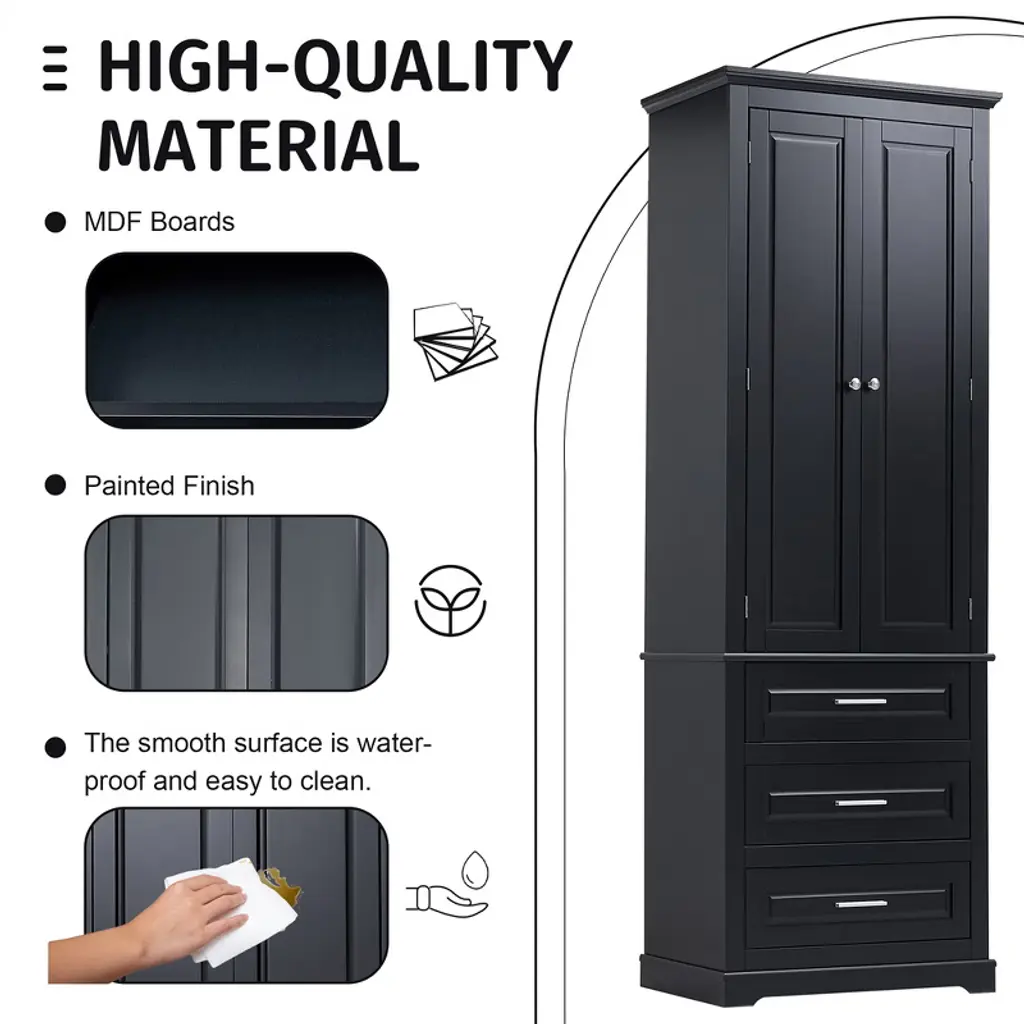 Crafted from premium MDF boards with a smooth, water-proof painted finish, this tall cabinet resists moisture in bathrooms and kitchens while offering effortless cleaning. The metal door handles, hinges, and drawer slides ensure long-lasting reliability, blending sturdy performance with a sleek, contemporary design that complements any decor.