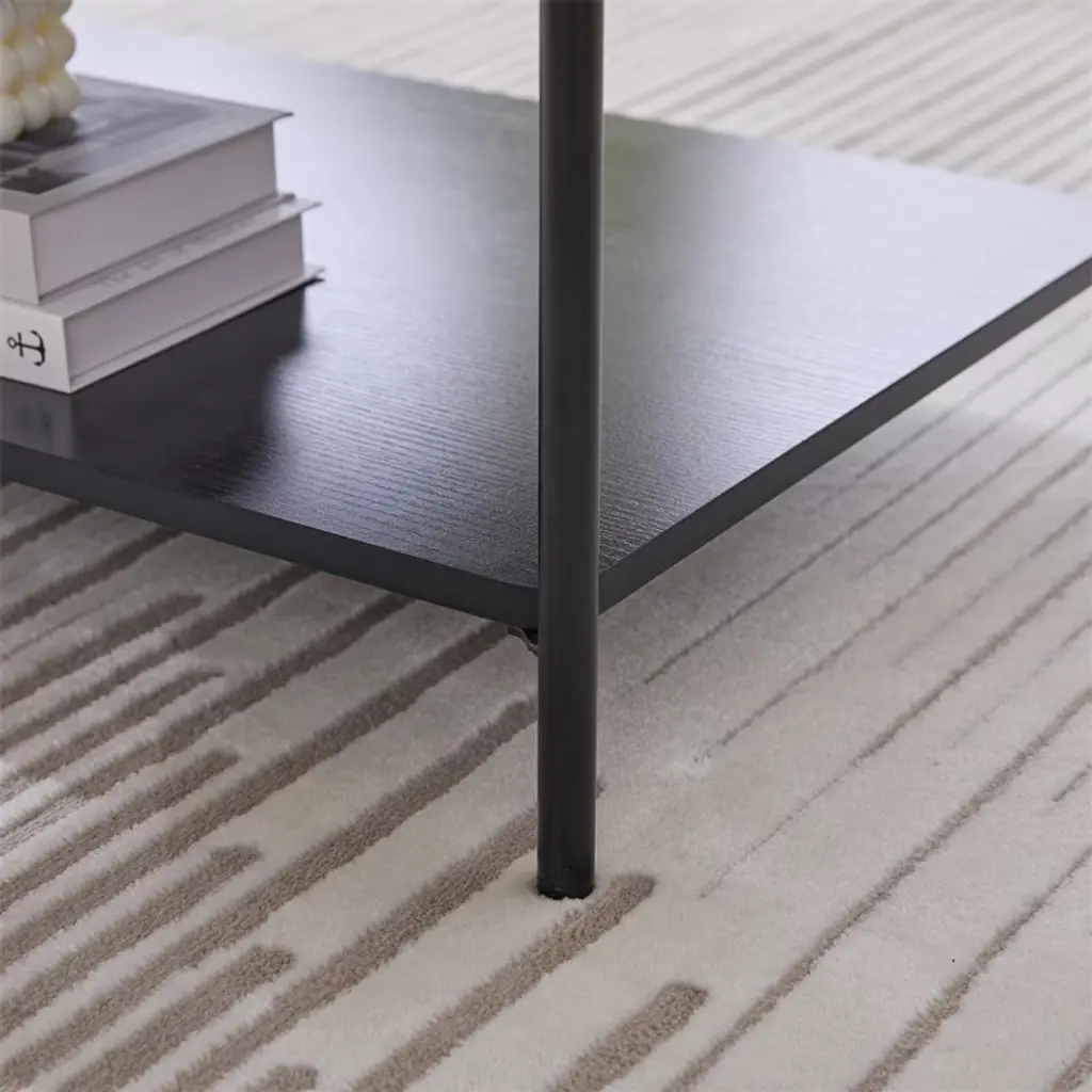 Xinghanzhenxuan Brown Upholstered Ottoman Coffee Table With Storage Shelf, Faux Fur Footstool With Black Metal Legs For Living Room