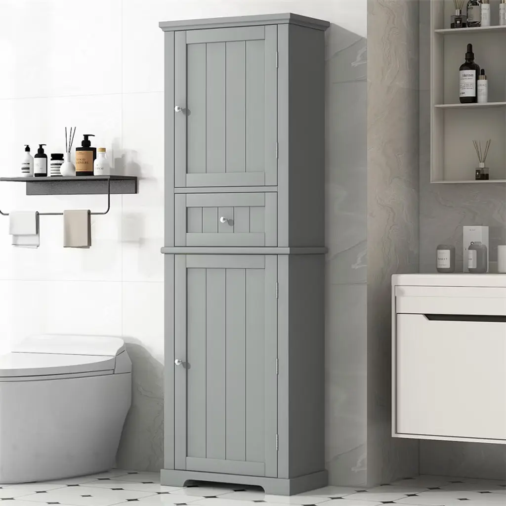 Xinghanzhenxuan Gray Freestanding Bathroom Storage Cabinet With Adjustable Shelf & Drawer, Waterproof Mdf Organizer