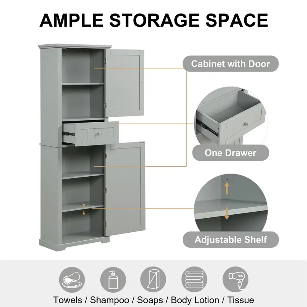 Crafted from high-quality MDF with a durable painted finish, this storage cabinet resists moisture and wipes clean effortlessly. The smooth surface features sturdy metal knobs for easy drawer and door operation. Perfect for humid bathroom environments, it maintains its sleek appearance while protecting your essentials from steam and splashes.