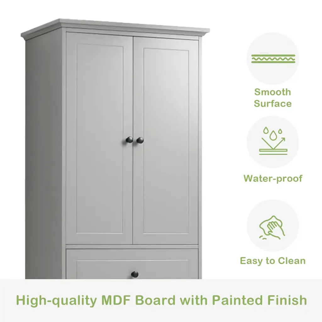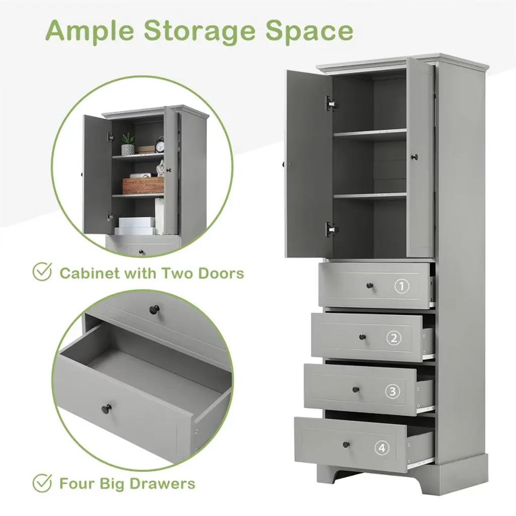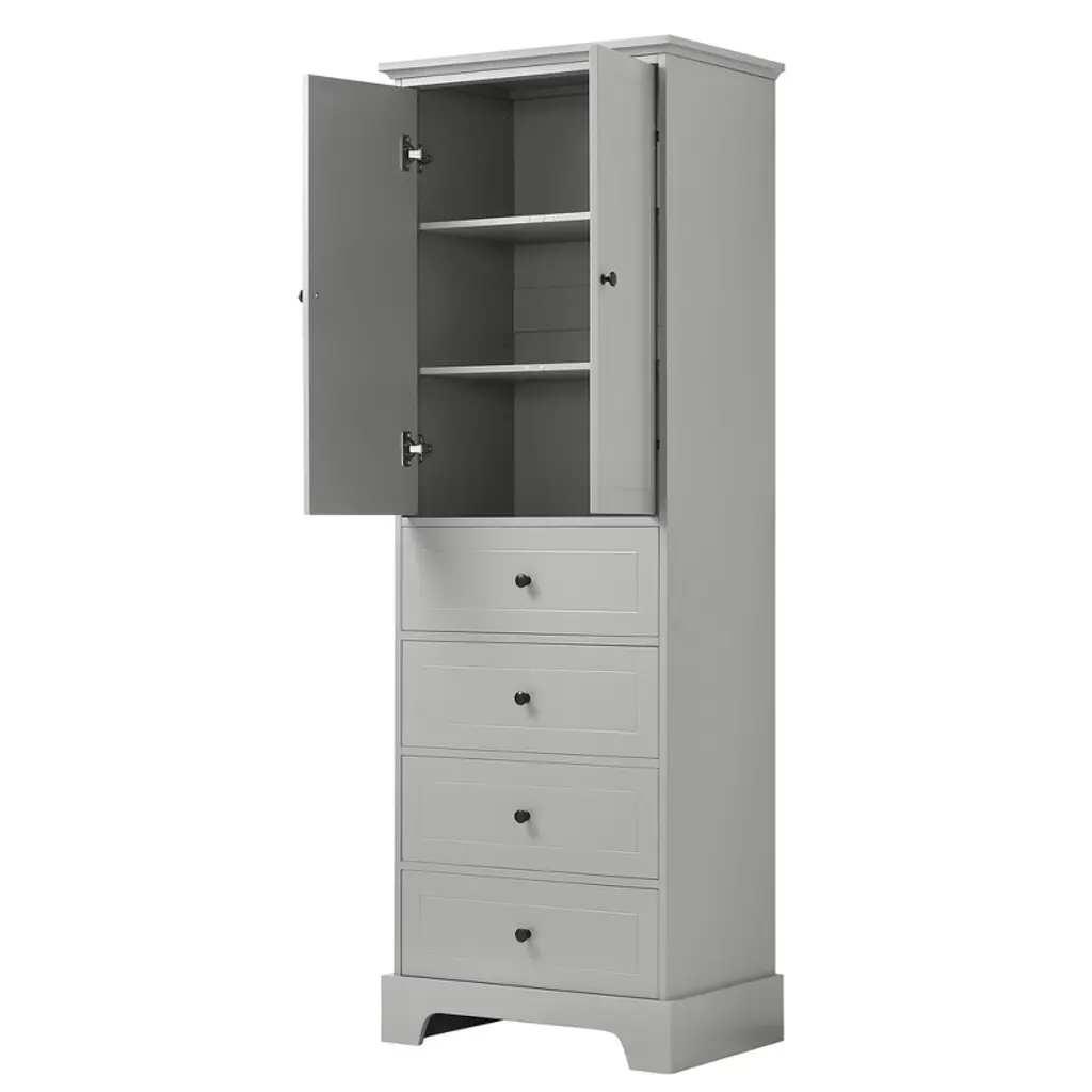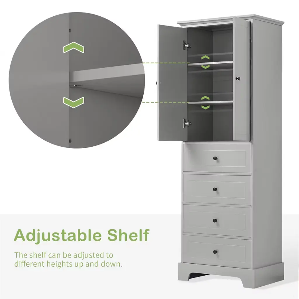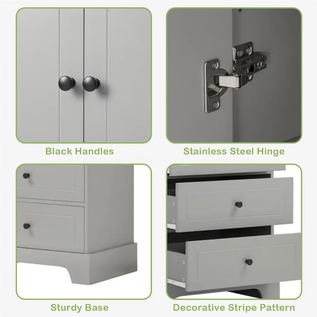 Xinghanzhenxuan Gray Storage Cabinet With 2 Doors And 4 Drawers For Bathroom, Office, Adjustable Shelf