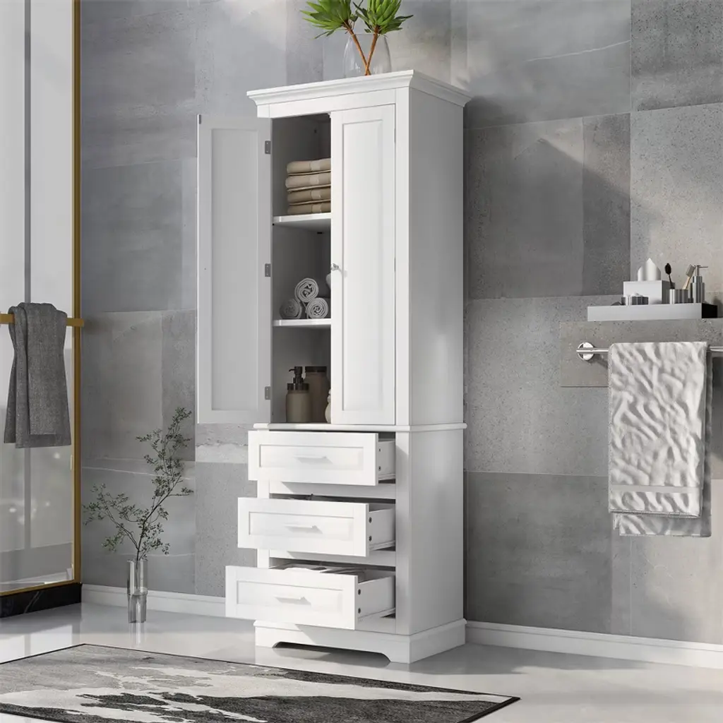 Xinghanzhenxuan White Tall 3-drawer Storage Cabinet For Bathroom & Office, Adjustable Shelf & Anti-tip Kit, Water-proof Painted Finish