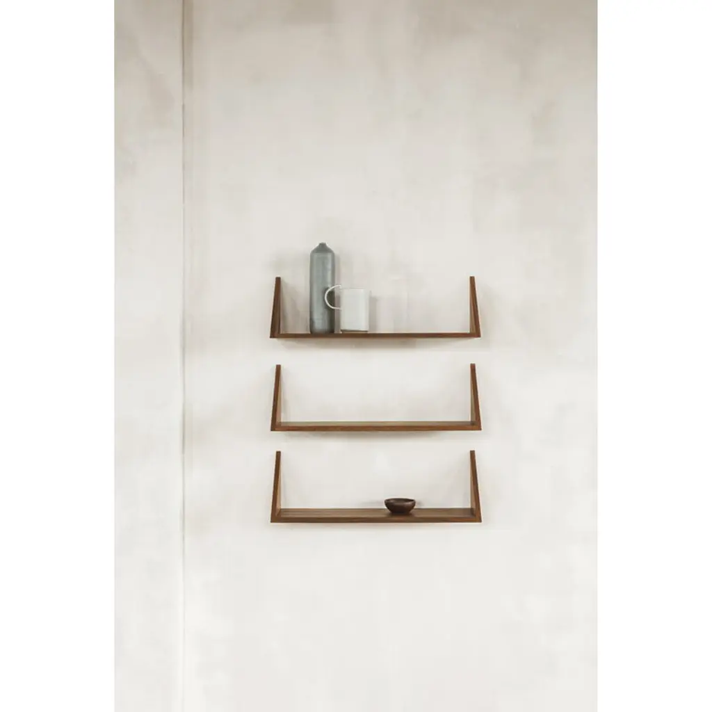 Sibast's XLIBRIS shelf, designed by Danish artist Kasper Eistrup, is characterized by its light and sleek silhouette, resembling the style of Japanese origami art. Bringing a refined touch to your home or office setting, Eistrup has included a brass emblem on the side of the wall shelf as a symbol of the design's four key components: necessity, functionality, materiality, and craftsmanship. Assembled without visible screws to highlight the natural look and feel of oak, the XLIBRIS shelf works wonderfully as a single wall element – or why not build an eye-catching storage solution by combining several XLIBRIS shelves, aligned either horizontally or vertically.