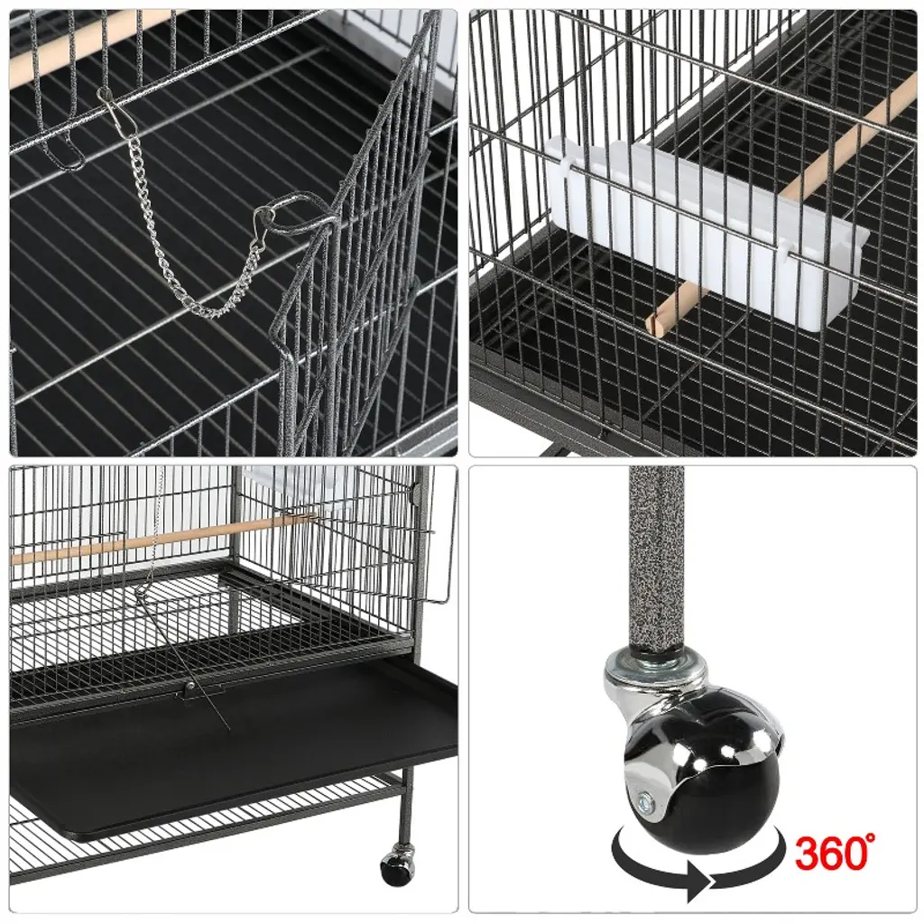 Yaheetech 52"h Rolling Bird Cage Parrot Cage With 3 Perches & Extra Storage Shelf, Black