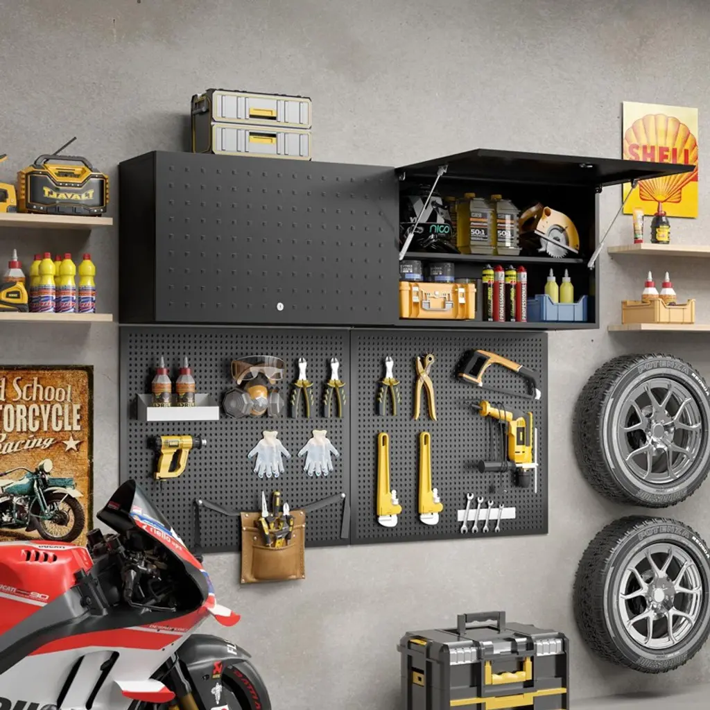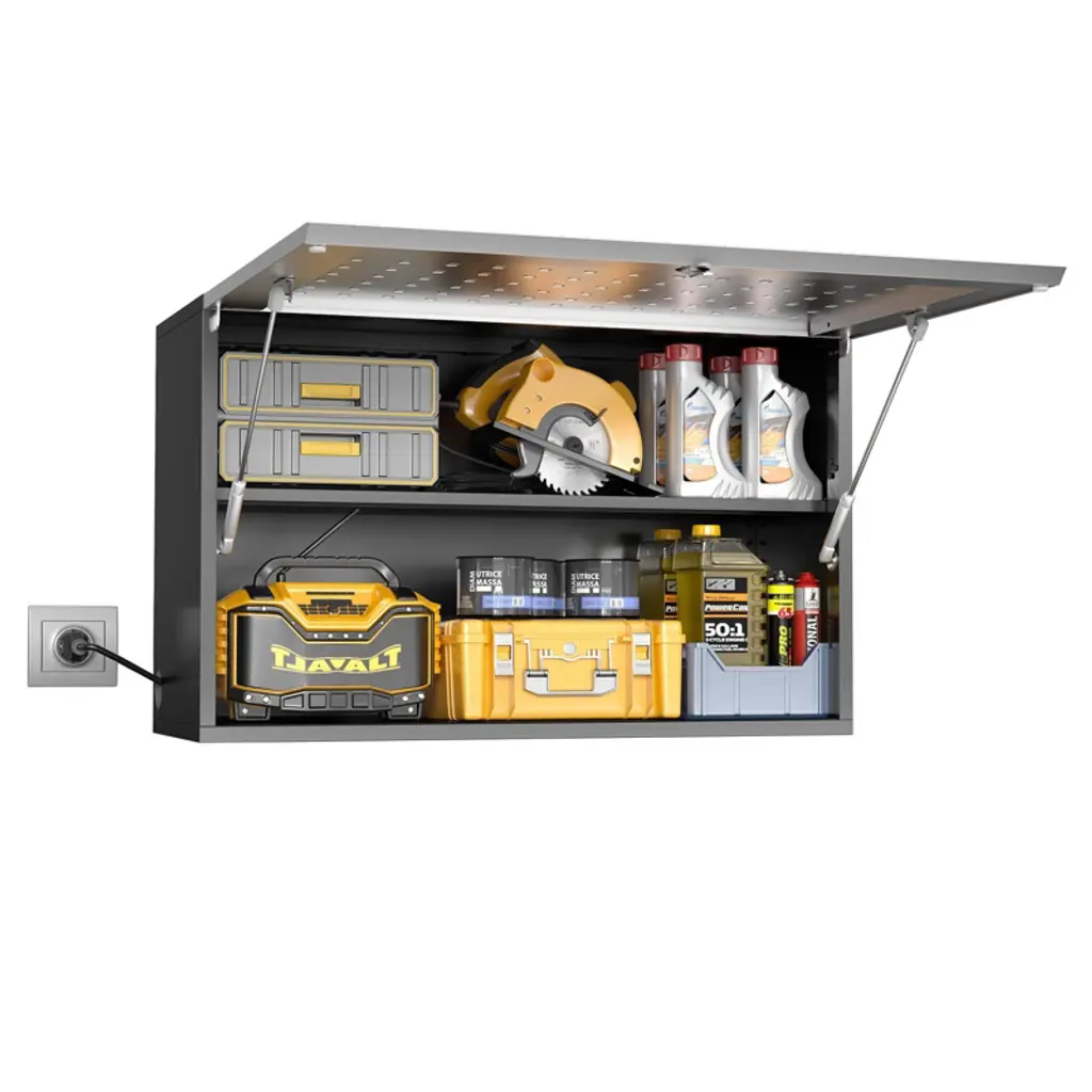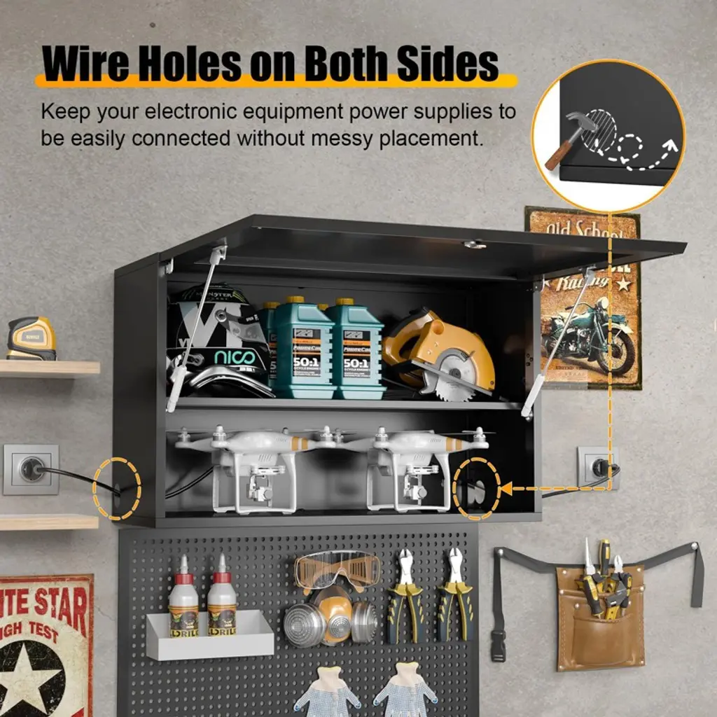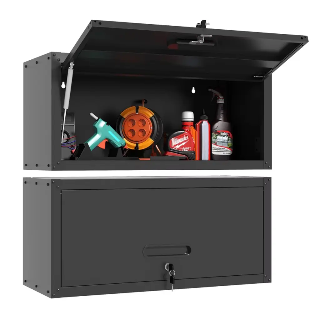 Zachvo 20 Inch High Black Lockable Wall-mounted Garage Cabinet With Flip-up Door And Adjustable Shelf For Workshop, Basement, And Home