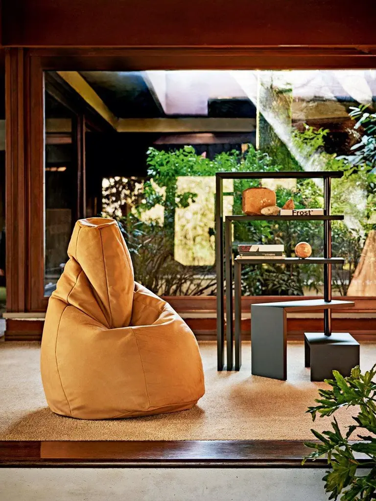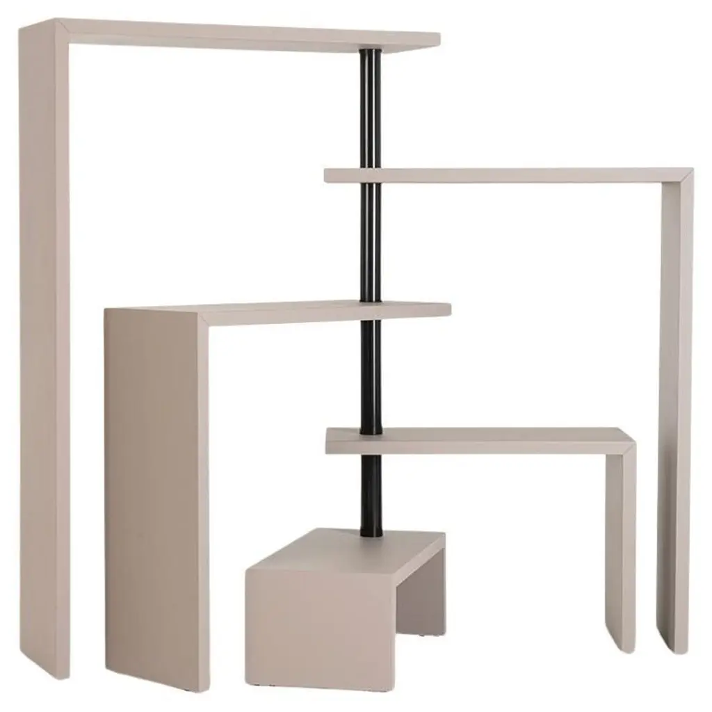 Five or seven shelves.Rotating shelf bookcase. Uprights and shelves in medium density fiberboard with internal steel corner reinforcing, finished with scratchresistant embossing in the shades talc, hemp, amaranth, espresso or black. Steel articulated joint in the shade black for the models hemp,amaranth, espresso or black or in the shade talc for the talc model. The shelf unit is available with either five or seven shelves.In designing Joy, Castiglioni realized the idea of technological and formal annihilation. Joy is a “neutral” object with a multiple role, the possible archetype of a new category. Joy’s peculiarity lies in the movement of rotating shelves realized with extreme simplicity: some horizontal shelves rotate freely around a vertical articulated column made of steel tubes. Joy is an “invention object” by one of the most influential masters of Italian Design.A "rotating shelf unit", hard to pigeonhole, which once again established a new typological record. A seemingly simple object made of six "overturned L-shaped" elements and a low supporting element that functions as a base for metal joints on with shelves are mounted.