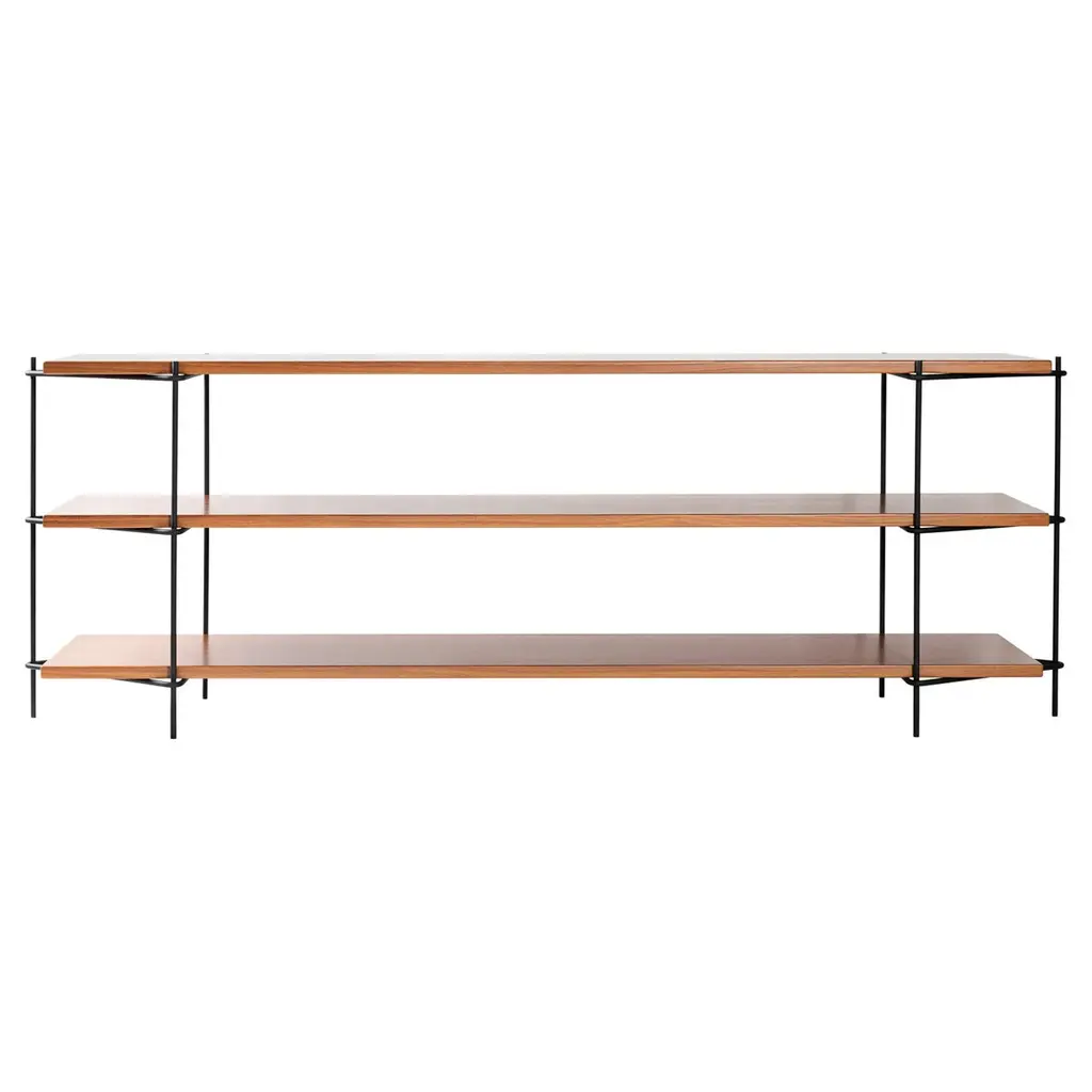 Put your objects in the spotlight with Zet, a modular shelving system that delivers on freedom and function. Easily assembled or disassembled and relocated whenever you want, its delicate balance of order, convenience and style is shaped from materials selected for beauty and endurance. Based on just two components - wooden U-shaped shelves and a metal frame construction defined by diagonal Z-struts – it comes in six colors and with optional display shelves and back panels. *Back panel and magazine shelf sold separately