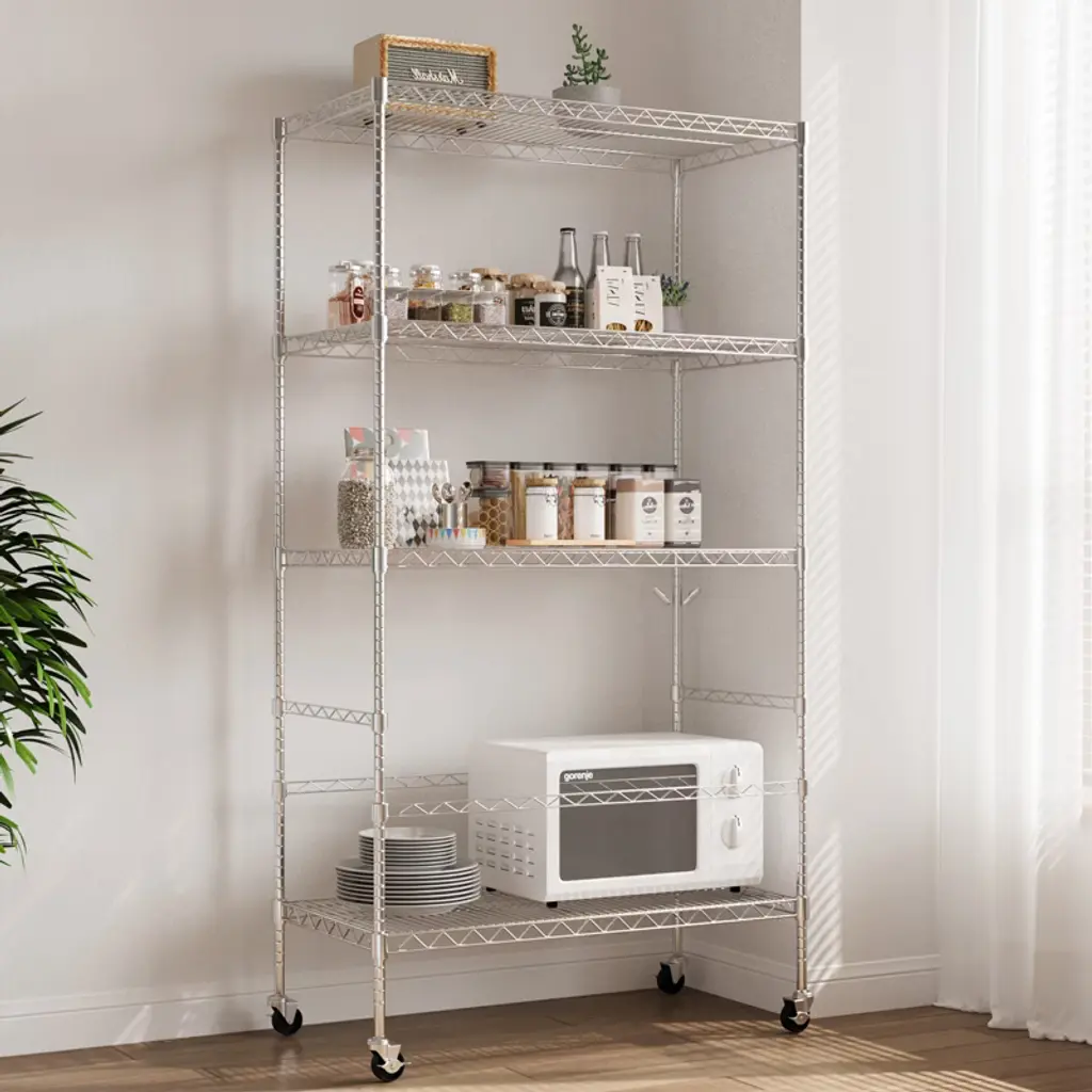5 Tier Metal Adjustable Storage Shelves Unit With Wheels,storage Cart Shelf Rolling Cart For Restaurant, Garage, Pantry, Kitchen