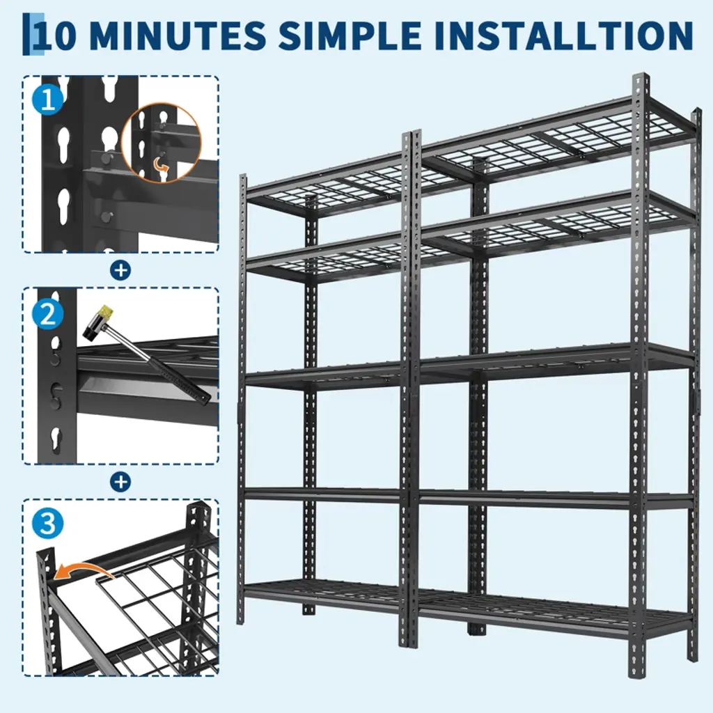 Heavy-Duty 2000LB Capacity:Thickened vertical supports and fortified shelves each hold 400 lbs. Designed for extreme stability, these racks won’t wobble even when fully loaded.