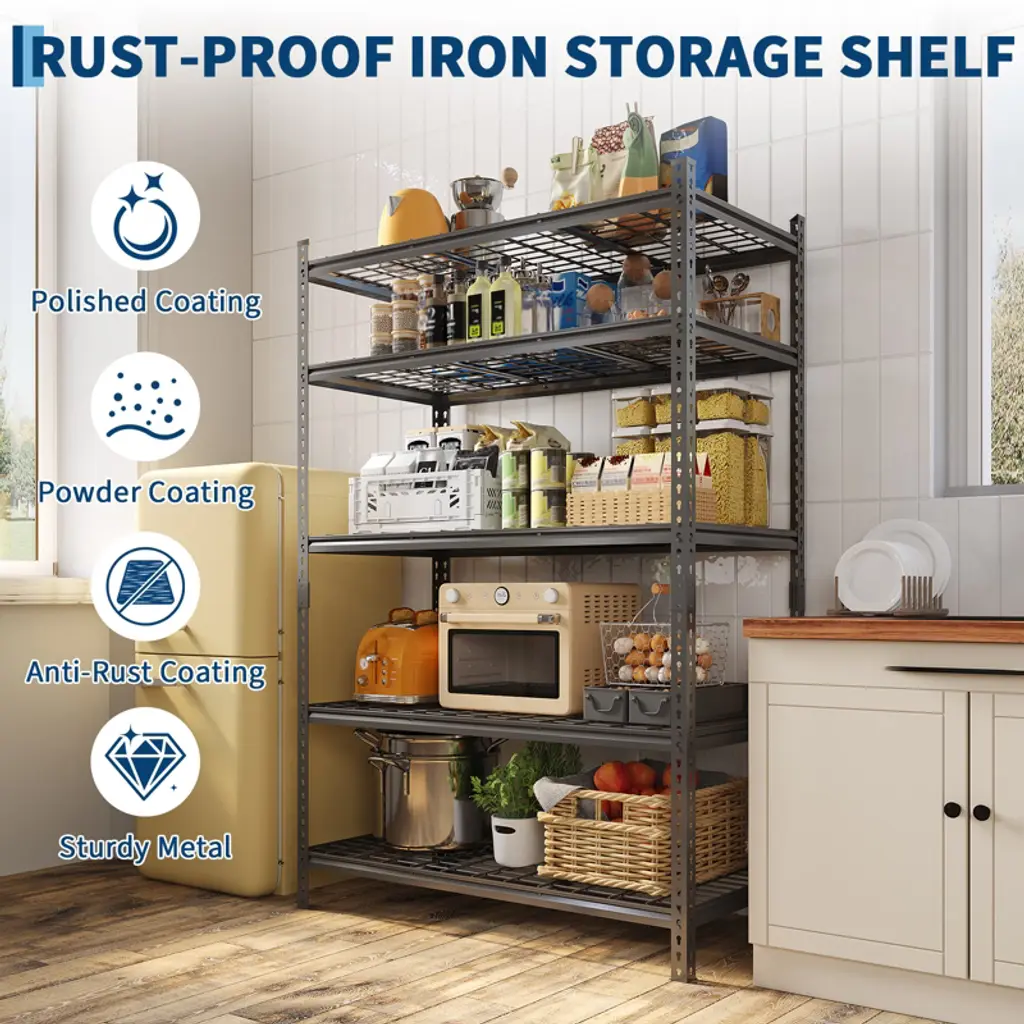 5 Tier Metal Storage Shelving Unit, Adjustable Garage Storage Shelves, Utility Storage Wire Rack, Kitchen Shelving Unit, 48”w X 24”d X 72”h, 1 Pc
