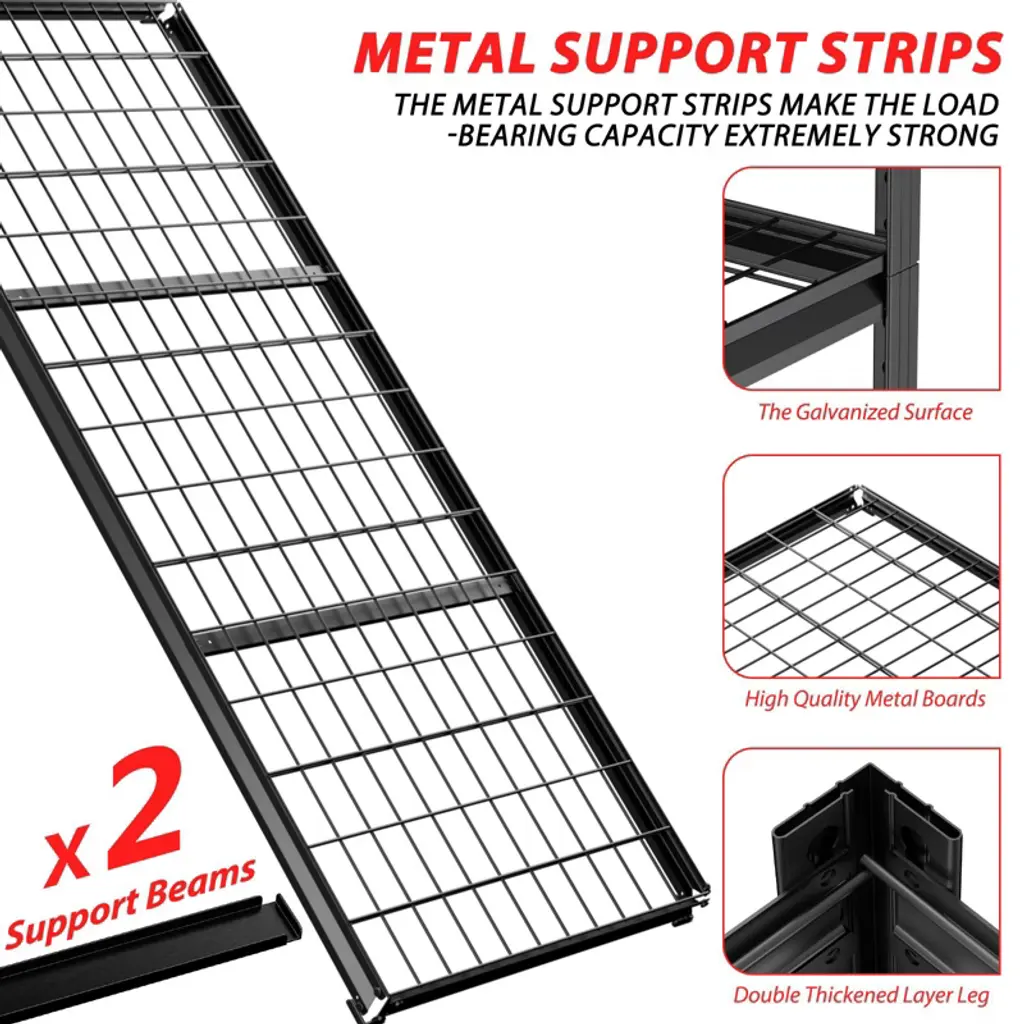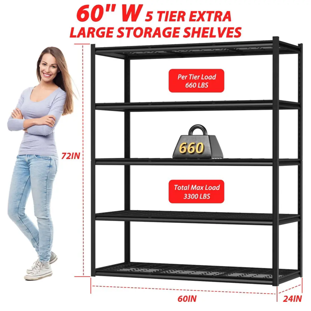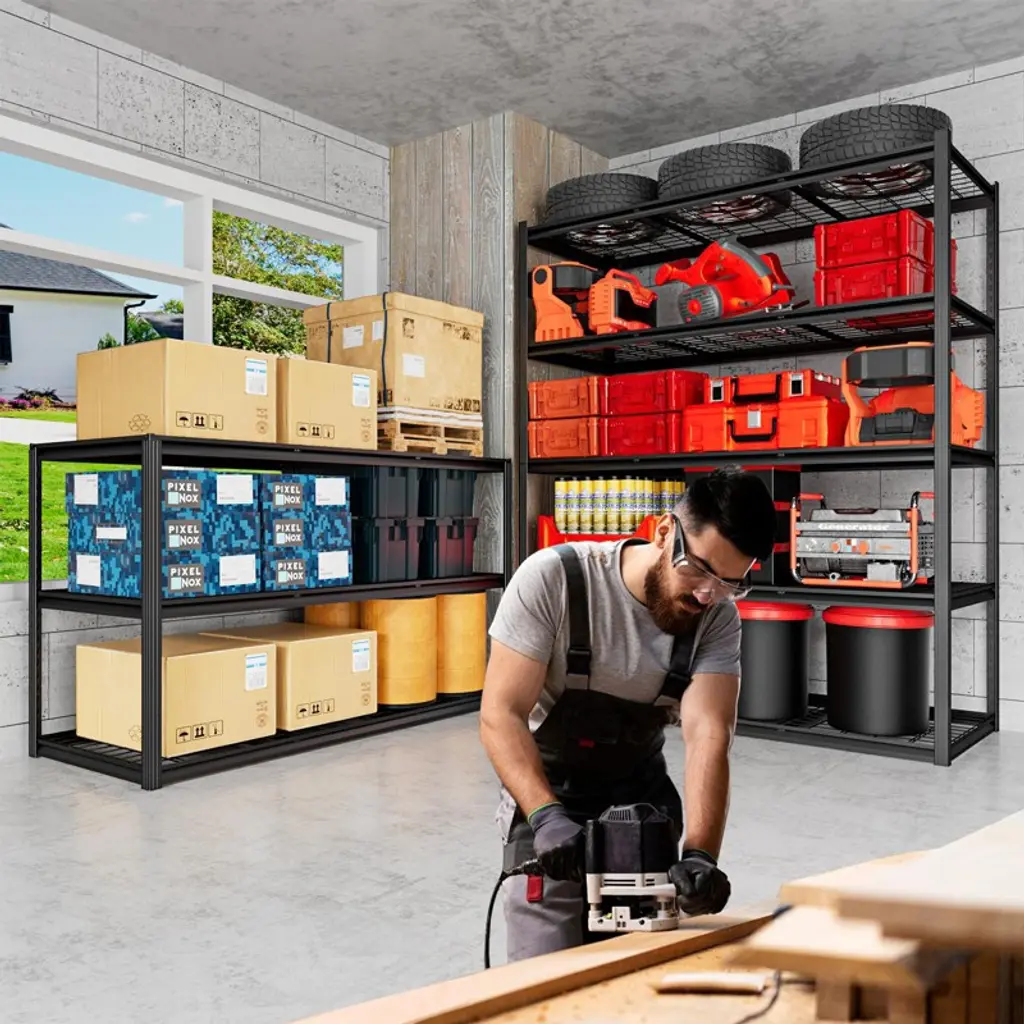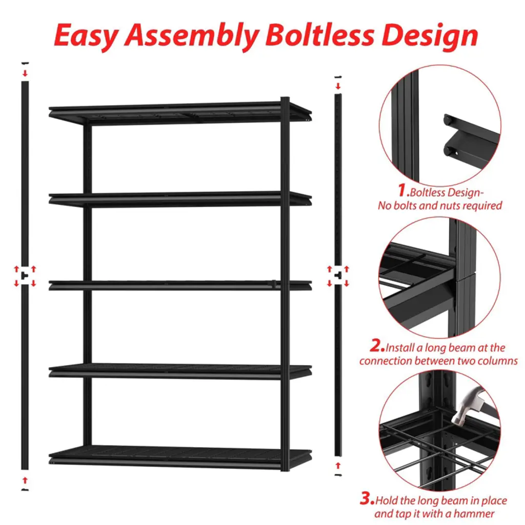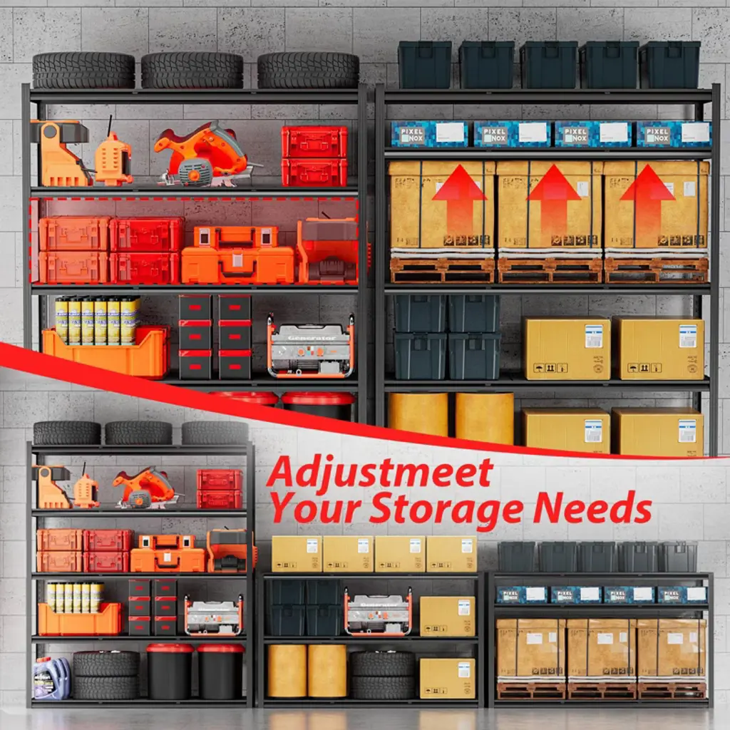Built with double-thick steel and reinforced ribs for total stability—no wobbling, even at full load. Adjust shelves to fit your space, and assemble in minutes without tools. The sleek hidden uprights offer a clean look while resisting rust and scratches. Perfect for garage, kitchen, basement, or warehouse use.