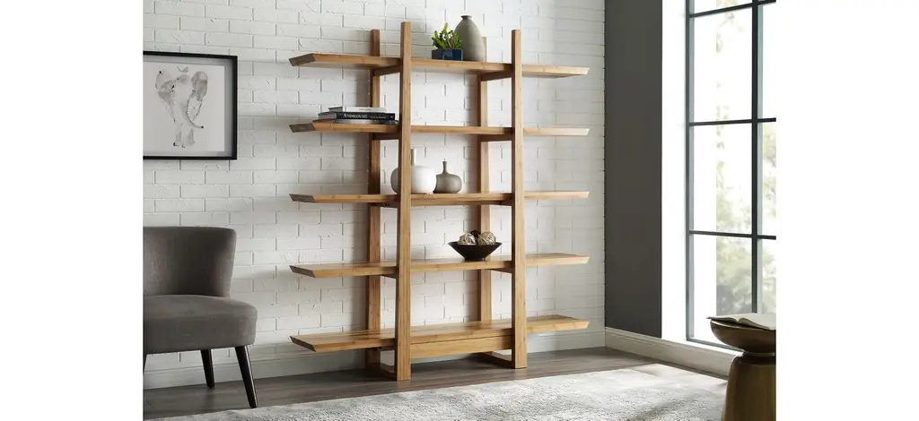The unique design of the Accents Magnolia Shelf, with detail in exotic Tiger, provides a finishing touch to your living space, flawlessly combining form with function. Perfect for either home or office, our Magnolia shelf features five shelves and will beautifully organize your room. Crafted in 100% bamboo, the Magnolia shelf makes it easy for you to promote sustainability in a lovely, classic and functional way in your home.