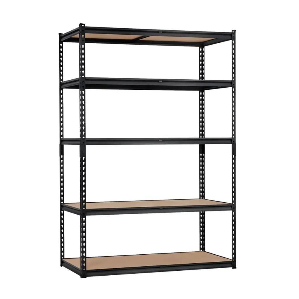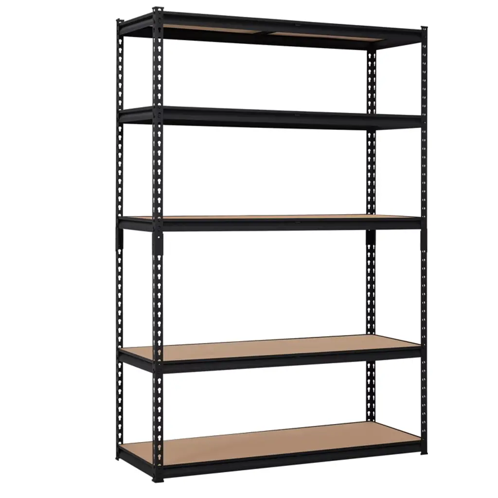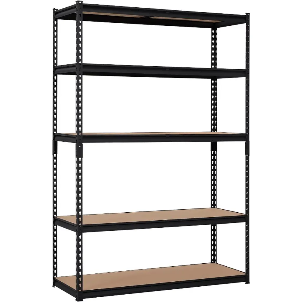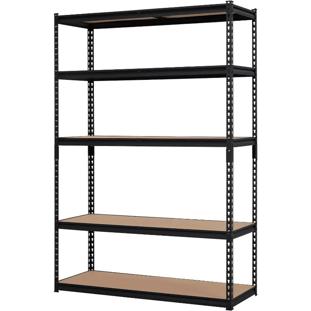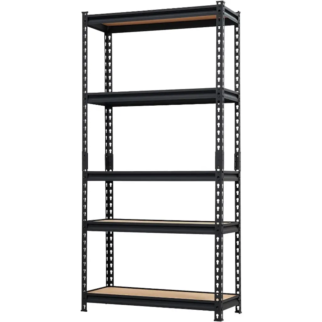 The Acekool 5-tier garage storage rack offers a powerful solution for organizing heavy items with a steel frame and thick MDF shelves holding up to 750 kg. Adjustable shelves and movable support beams provide versatile storage options to fit your space. Designed for garages, warehouses, and utility areas, the rust-resistant finish meets ISO9001 and ISO14001 standards, ensuring lasting use. Assembly is simple with boltless snap-in parts and a rubber mallet, no tools required. Measuring 71" tall, this shelving unit helps transform cluttered areas into efficient, orderly storage zones.