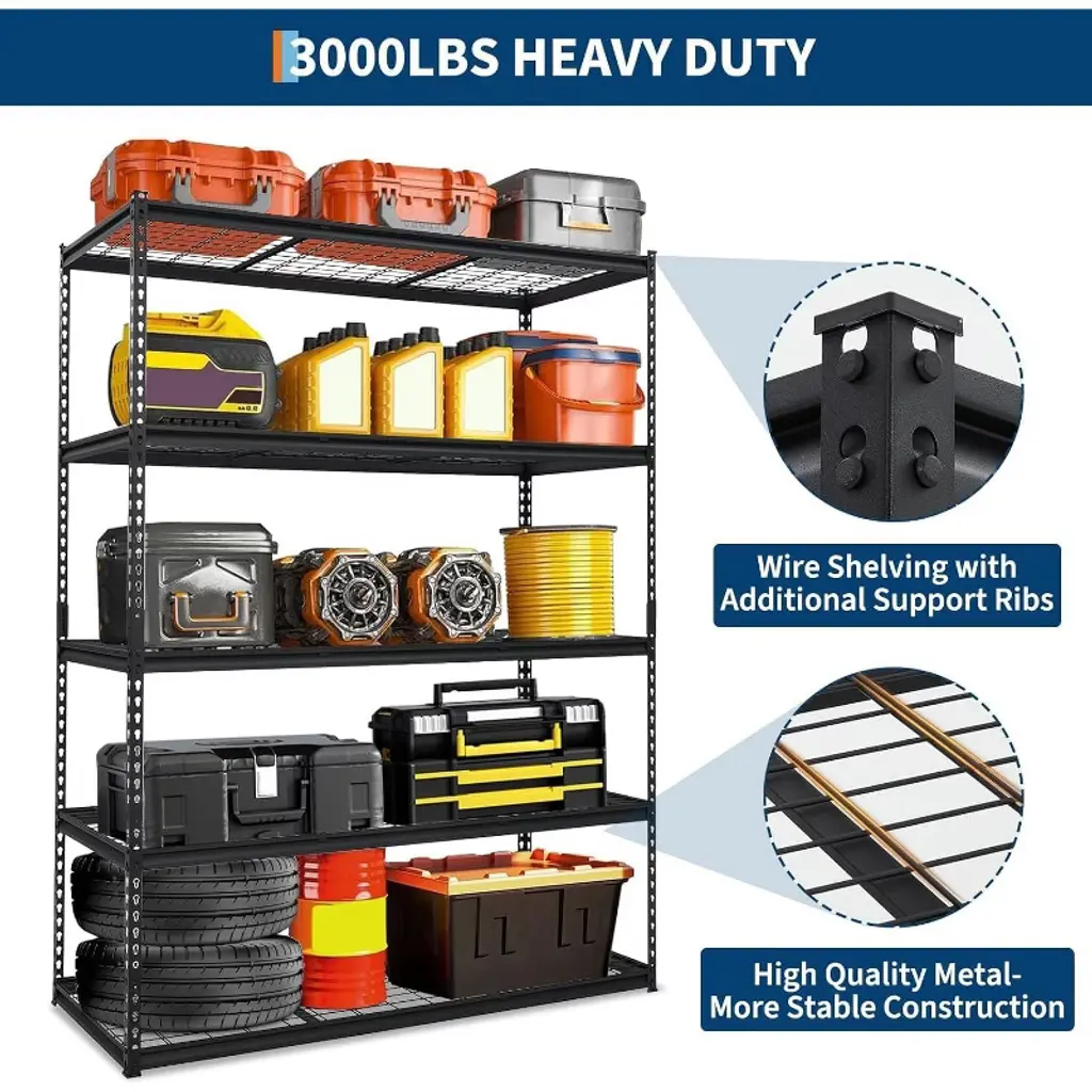 Acekool Heavy Duty Adjustable Garage Shelving Unit, 60" L X 24" W X 78" H, Metal Storage Rack With 2500 Lbs Load Capacity, Easy Assembly