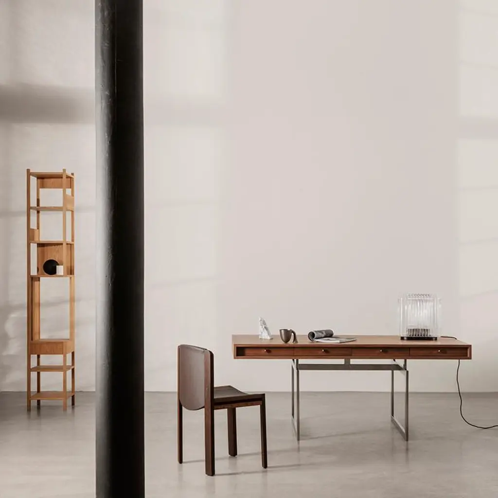 Shelving unit designed by Achille Castiglioni in 1991. Castiglioni is said to ponder a lot on lost space. Empty inches and square meters that could be filled with beautiful design—but for some reason just never were. Due to this thinking he did many designs intended specifically for the corners of the home. Lungangolo is one of those. Lungangolo is a multi-use piece of furniture originally produced by Bernini. The frame is made of four slender pillars with square cross-sec-tions in between to support the square shelves placed in various heights. The structure is strengthened by a drawer and a side piece. The position of the drawer and elimination of part of the support meant it had to be manufactured in two versions—to work for both left and right handed.Important information regarding images of products:Please note that some of the images show other colors and variations of the model, these images are only to present interior design proposals. The item that is selling is on the first image. Important information regarding color(s) of products:Actual colors may vary. This is due to the fact that every computer monitor, laptop, tablet and phone screen has a different capability to display colors and that everyone sees these colors differently. We try to edit our photos to show all of our products as life-like as possible, but please understand the actual color may vary slightly from your monitorAbout the designer:Renowned Italian designer Achille Castiglioni (1918-2002) had a passion for re-designing, re-inventing and re-conceptualizing. Traditional interior design objects would pass through his Milan-based studio and end up perfected. He always aimed at enhancing and glorifying the value of the design. Throughout his career he worked to raise design to an ever-higher level of synthesis - stripping design down to the very core and eliminating everything superfluous. During his career Achille Castiglioni collaborated with many designers, among them Giancarlo Pozzi. Together they made Trio and Comodo in 1991.About the manufacturer:Karakter is a Danish design company founded on a spirit of exploration, courage and an uncompromising attitude to quality. Rooted in the Scandinavian design tradition with an international outlook, Karakter presents a portfolio of furniture, lighting and objects that is relevant, honest, expressive and sometimes playful. Aspiring to build an enduring legacy, they work with contemporary designers such as Aldo Bakker and PlueerSmitt and present works by the masters Bodil Kjær, Achille and Pier Giacomo Castiglioni, Paul McCobb, Joe Colombo and Angelo Mangiarotti. Each piece has a clear, undeniable expression, ensuring it pride of place in private homes and public spaces worldwide.