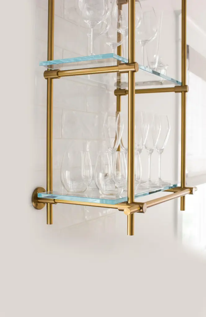 Our Collector’s Shelving Units have been featured in award-winning residential, hotel, retail, and hospitality projects. Each year we produce hundreds of bespoke units, engineered and fabricated to our customer’s specifications. This new program offers a pre-engineered, curated selection of our most requested wall and ceiling mounted units. Each unit is finished by hand, built to order, and offered in our most popular options. Currently, at this price point and lead time, these units are only available in our Warm Brass finish with Low-Iron glass shelves for mounting to the wall, ceiling, or both. Spacing between shelves and overall is per-determined.If these options are not what you are looking for, our team is here to help you design the perfect custom unit for your project. Pricing and lead time for custom units will increase.