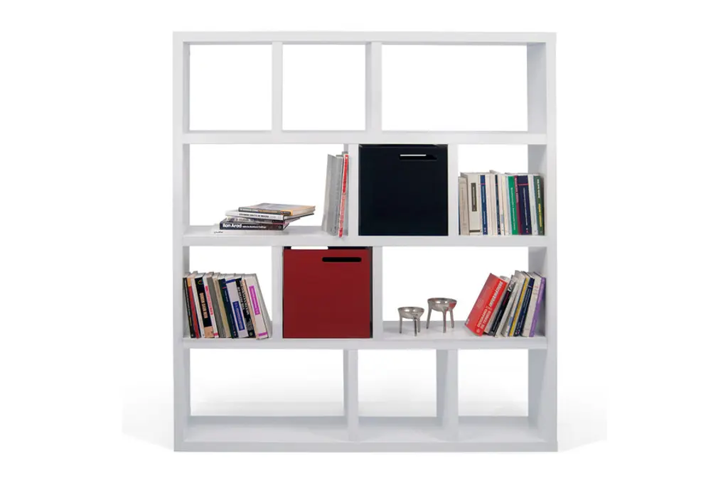 The geometric design of the Berlin 4 Level 59" Shelving Unit was created to easily blend into any living space or home office. Beautifully crafted of honeycomb inlay framed with chipboard and encased in a medium-density fiberboard shell for increased strength with less weight, this multi-purpose piece can store much more than just books. When combined with the optional Berlin Box, this shelf can bring a splash of color to enhance any room.