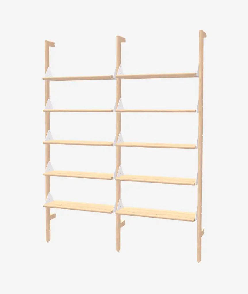The Branch Shelving System blends mid-century style with modular components that give you an infinite number of elegant, open-storage options for home or office. The design features varying bookshelf configurations that can be transformed into a seamless workspace with the addition of a desk unit. Additional add-on units let you customize the size and layout of your shelving system to perfectly suit your space, and the shelves are height adjustable to suit any arrangement of decorative items or resources. Refined details, such as rounded edges on the shelves and uprights, soften Branch’s aesthetic and enhance its architectural style. Straightforward installation means you can spend more time perfecting your vision and display. *Includes: 3 Branch Uprights and 10 Shelves. Additional Add-Ons may be purchased here to customize the configuration.