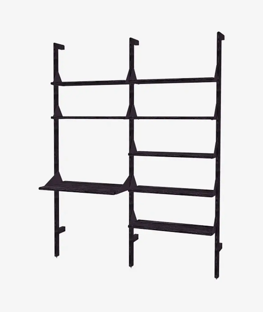 The Branch Shelving System blends mid-century style with modular components that give you an infinite number of elegant, open-storage options for home or office. The design features varying bookshelf configurations that can be transformed into a seamless workspace with the addition of a desk unit. Additional add-on units let you customize the size and layout of your shelving system to perfectly suit your space, and the shelves are height adjustable to suit any arrangement of decorative items or resources. Refined details, such as rounded edges on the shelves and uprights, soften Branch’s aesthetic and enhance its architectural style. Straightforward installation means you can spend more time perfecting your vision and display. *Includes: 3 Branch Uprights, 7 Shelves and 1 Desk Shelf. Additional Add-Ons may be purchased here to customize the configuration.