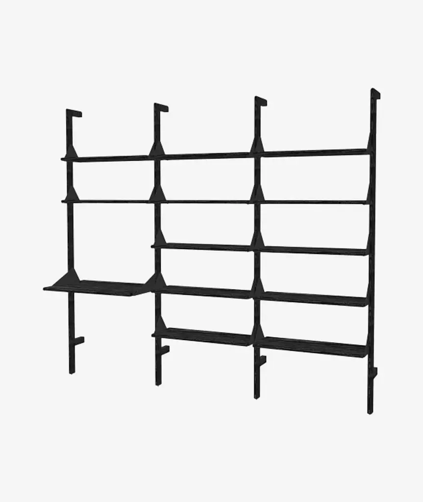 The Branch Shelving System blends mid-century style with modular components that give you an infinite number of elegant, open-storage options for home or office. The design features varying bookshelf configurations that can be transformed into a seamless workspace with the addition of a desk unit. Additional add-on units let you customize the size and layout of your shelving system to perfectly suit your space, and the shelves are height adjustable to suit any arrangement of decorative items or resources. Refined details, such as rounded edges on the shelves and uprights, soften Branch’s aesthetic and enhance its architectural style. Straightforward installation means you can spend more time perfecting your vision and display. *Includes: 4 Branch Uprights, 1 Desk Shelf and 12 Shelves. Additional Add-Ons may be purchased here to customize the configuration.