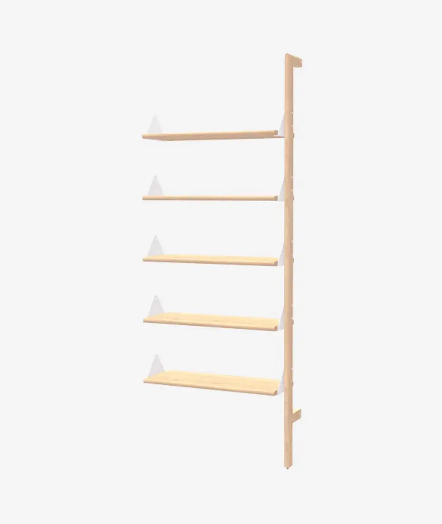 The Branch Shelving System blends mid-century style with modular components that give you an infinite number of elegant, open-storage options for home or office. The design features varying bookshelf configurations that can be transformed into a seamless workspace with the addition of a desk unit. Additional add-on units let you customize the size and layout of your shelving system to perfectly suit your space, and the shelves are height adjustable to suit any arrangement of decorative items or resources. Refined details, such as rounded edges on the shelves and uprights, soften Branch’s aesthetic and enhance its architectural style. Straightforward installation means you can spend more time perfecting your vision and display.  *Includes: 1 Branch Upright and 5 Shelves. Additional Add-Ons may be purchased here to customize the configuration.