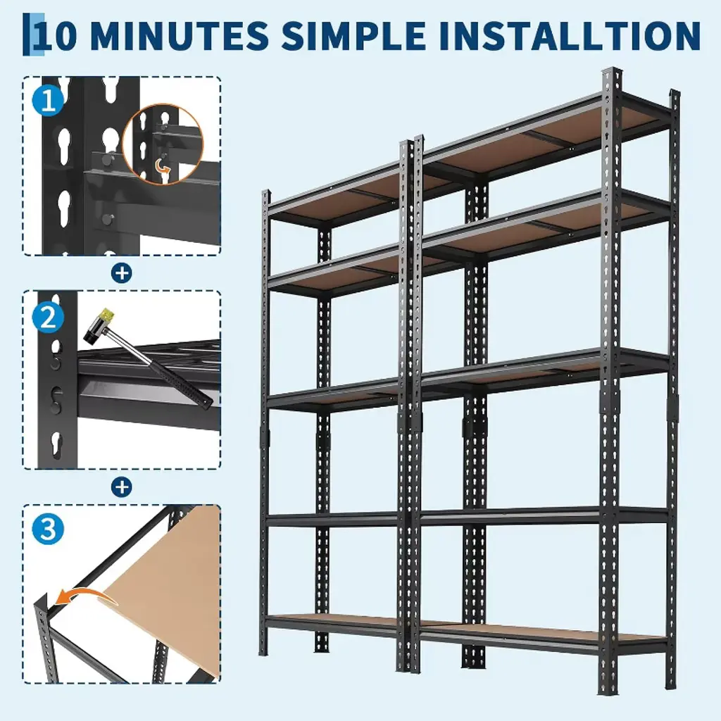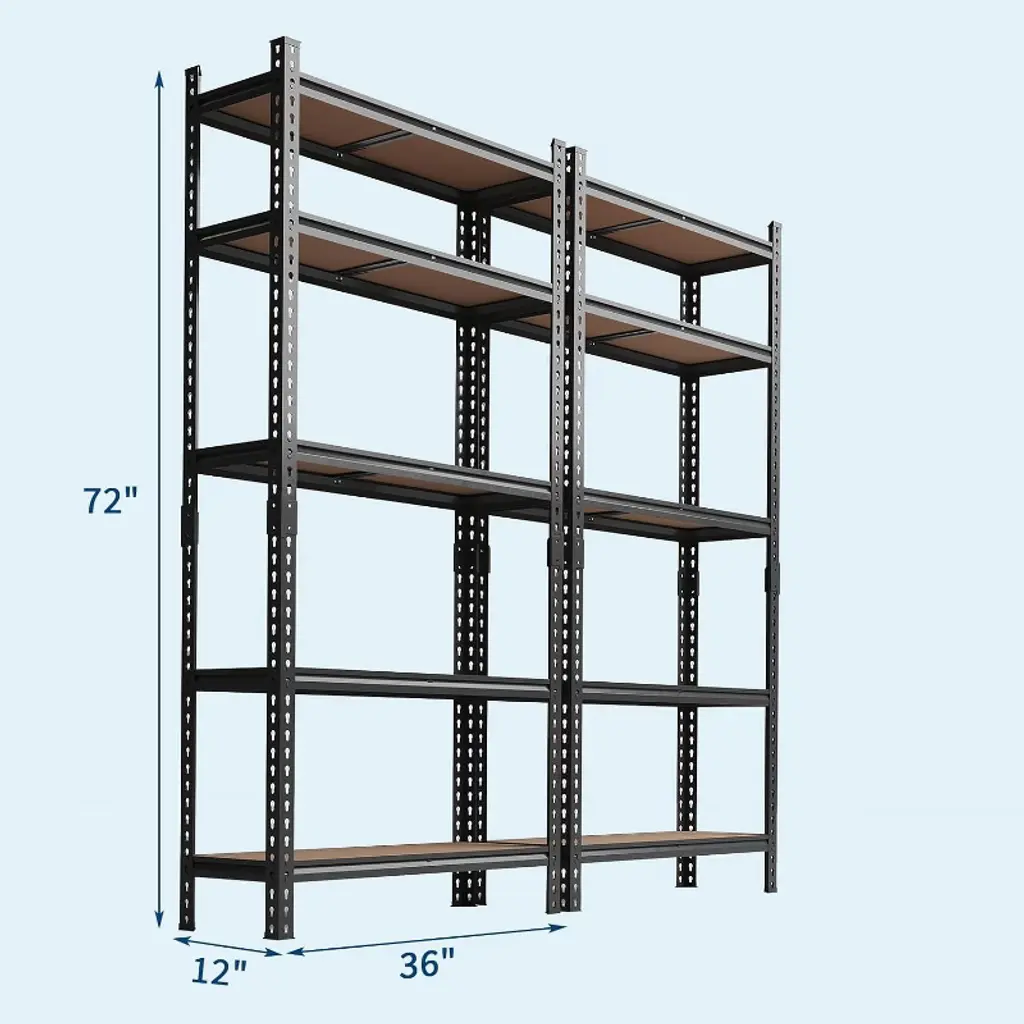 Storage Shelves 5 Tier Garage Shelving Heavy Duty Adjustable Metal Shelving Unit, Garage Shelves for Basement, Warehouse, Pantry, Closet, Kitchen 72" H x 35.5" W x 12" D, Black,2 Pack