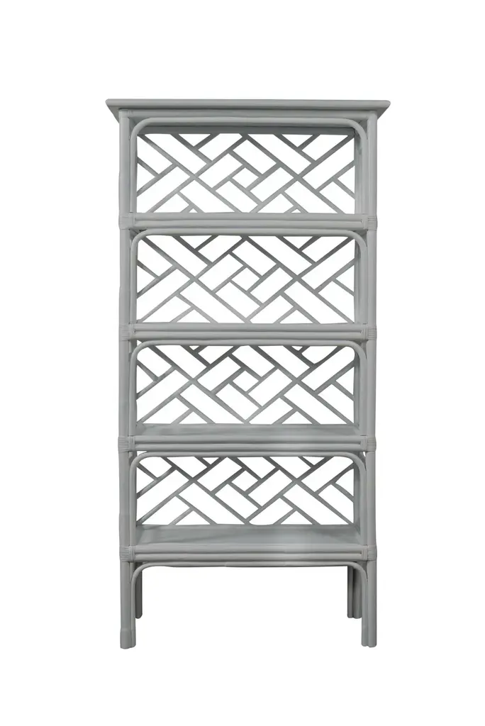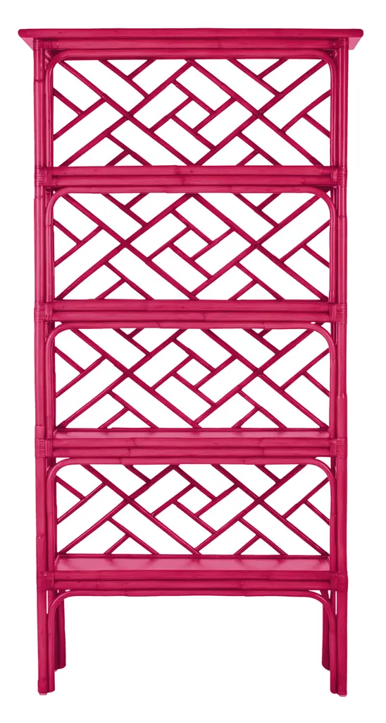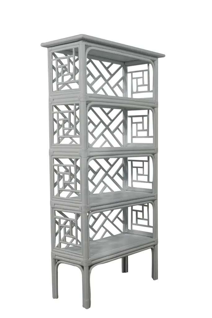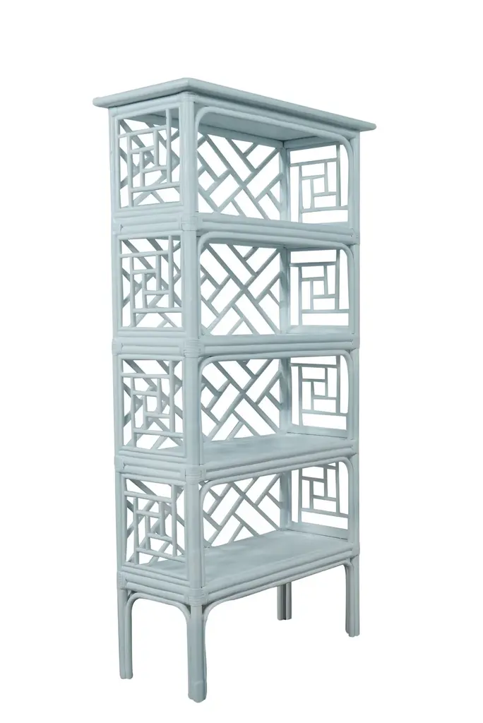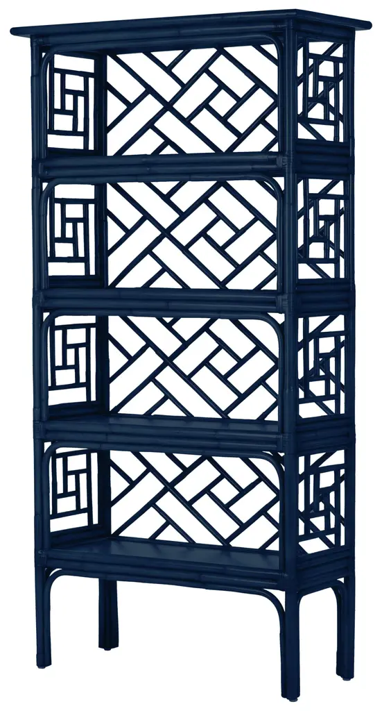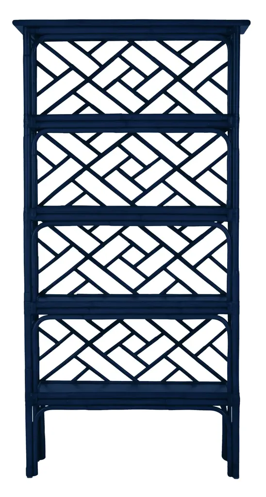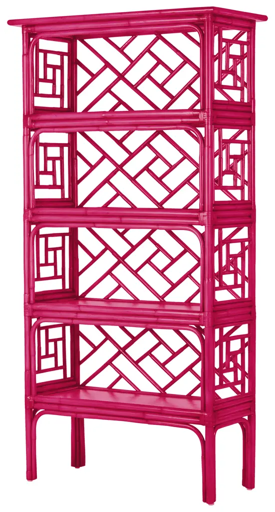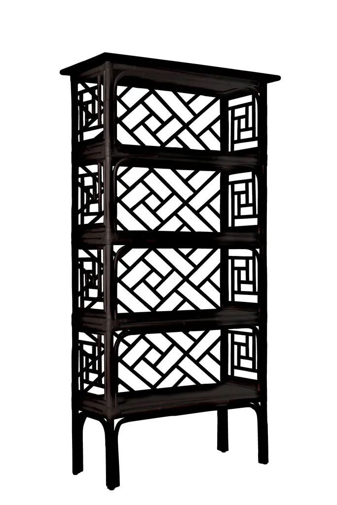 Strong yet stylish, this Chippendale bookcase or etagere by David Francis is a classic piece of furniture which will add a bit of whimsy to your home decor. The alluring shelving unit is crafted from rattan and is more than just a statement piece- it provides excellent storage options. The chic glossy finish comes in a variety of colors and makes a great choice for modern-classic home decor.