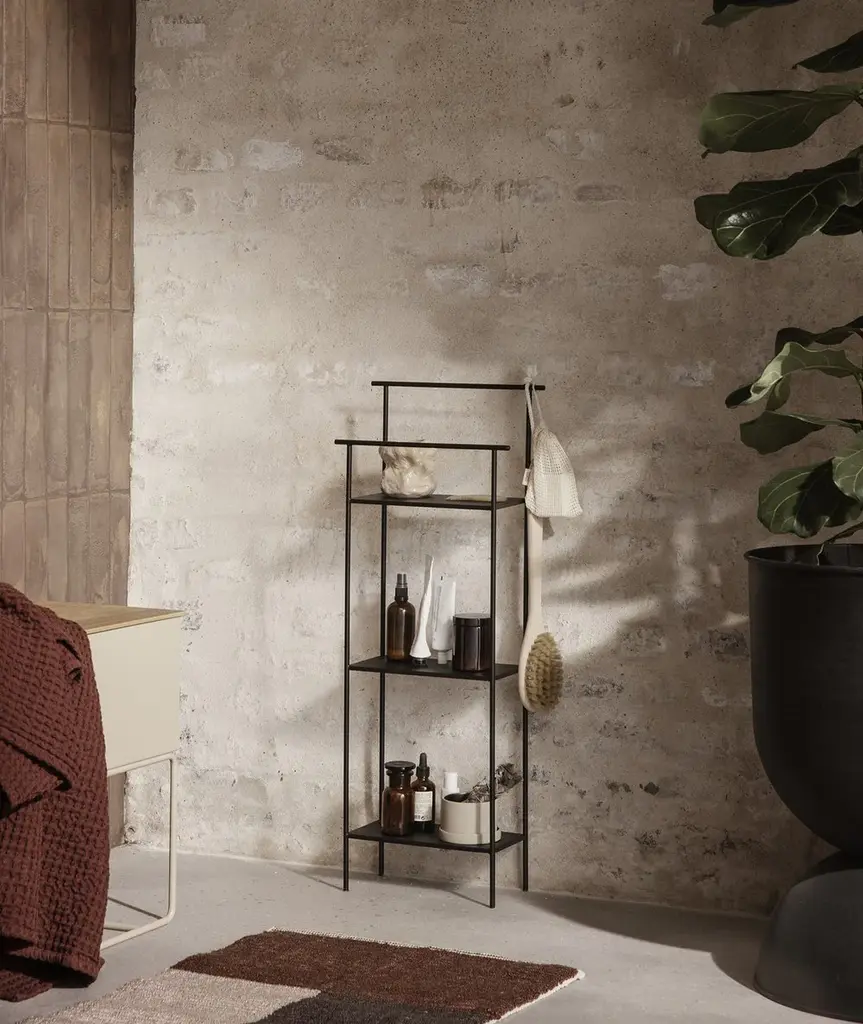 The Dora family has expanded to include a series of freestanding furnishings that are ideal for bathroom. Made from powder-coated metal, the simple yet functional designs are rust-resistant, so are ideal for use in damp conditions. The Dora Shelving Unit has room for all of your bathroom essentials and with its slim design, it can even be stood inside the shower.