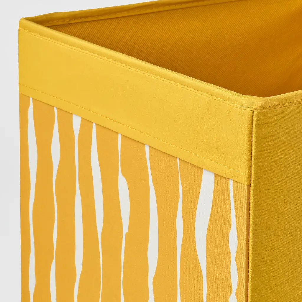 DRÖNA Box - dark yellow 13x15x13 ". Fits perfectly in KALLAX shelving unit and other units with shelves which are at least 15" deep. Ideal for storing media gadgets, clothes and other things that you use often and want close at hand, but still hidden. Dimensioned to fit KALLAX shelf unit.