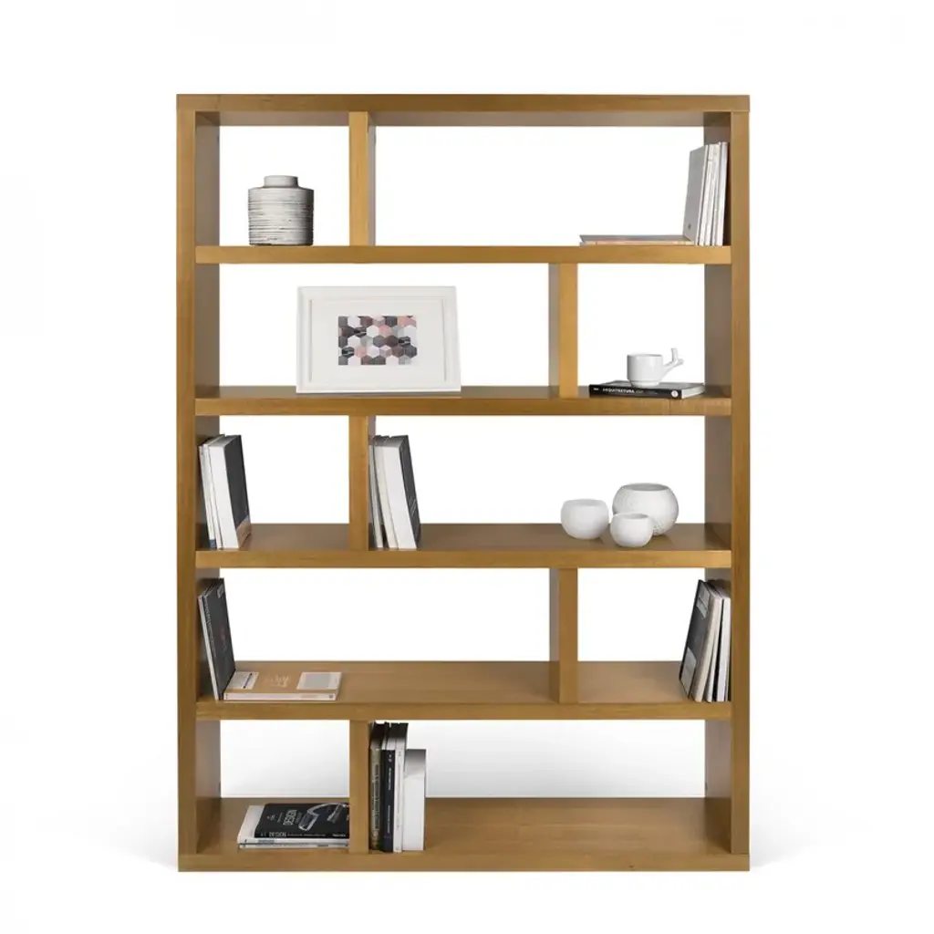 The geometric shelving unit Dublin is the perfect match for those who like practical furniture with an exquisite feel. Veneered with the outstanding and extremely soft mukali wood finish, a one of a kind in TemaHome's collection.