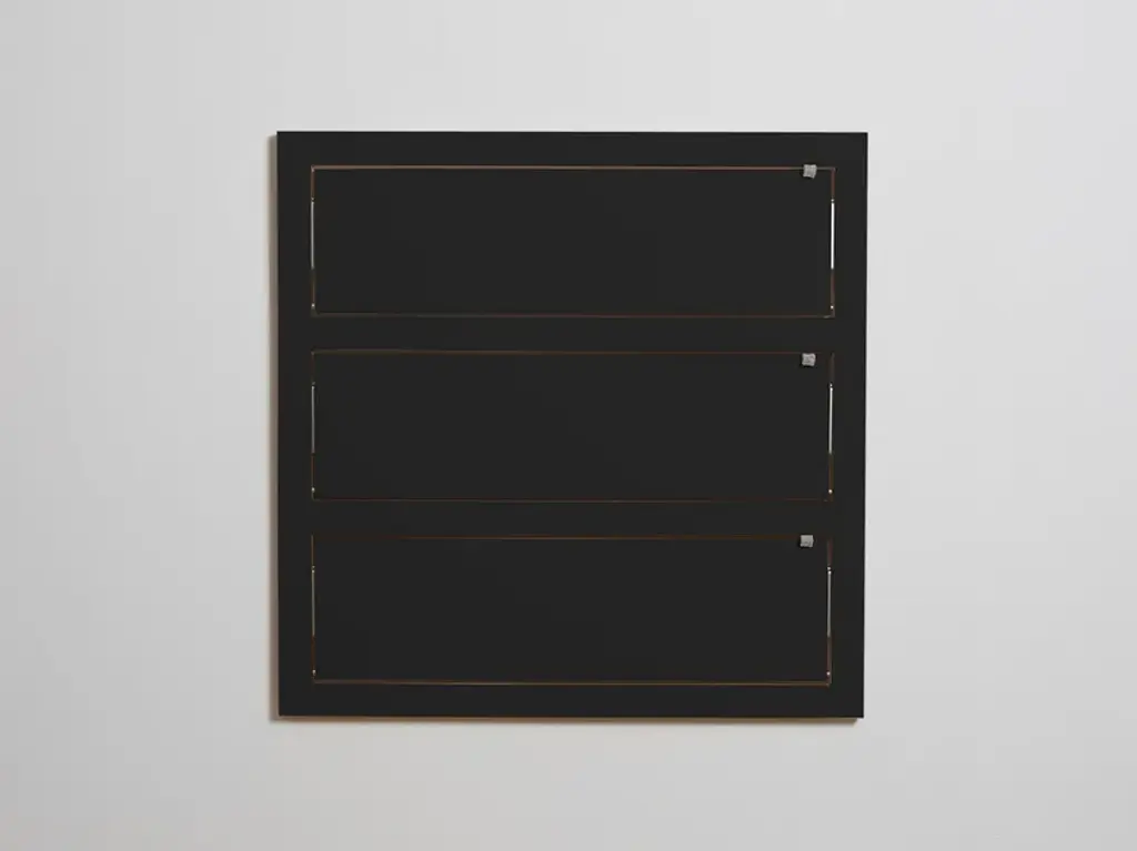 Fläpps 80x80x3 - The Triple Slim offers shelving space to cater for bookworms, film buffs and music lovers alike. As with all Fläpps products, it can be combined with other solutions in the range.The whole Fläpps-Collection is printable and combinable with each other. That gives anyone the freedom to individually compose their wall-setup, and change it whenever they are undecided. A wall mounting mechanism, especially designed for this purpose, makes it possible. It consists of two wooden slats that can effortlessly be connected to the wall by using the provided stencil. After that Fläpps can be mounted safely and stable. In this way no abrasion occurs to the product while mounting and demounting so nothing stands in the way for undecided people. No matter how often they like to move or reposition their product. AMBIVALENZ - STAY UNDECIDED!Material: birch plywood, stainless steelDimensions: 800 x 800 x 20mmFinish: Lacquer