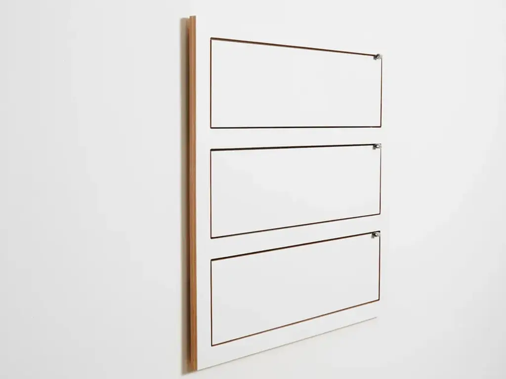 Fläpps 80x80x3 - The Triple Slim offers shelving space to cater for bookworms, film buffs and music lovers alike. As with all Fläpps products, it can be combined with other solutions in the range.The whole Fläpps-Collection is printable and combinable with each other. That gives anyone the freedom to individually compose their wall-setup, and change it whenever they are undecided. A wall mounting mechanism, especially designed for this purpose, makes it possible. It consists of two wooden slats that can effortlessly be connected to the wall by using the provided stencil. After that Fläpps can be mounted safely and stable. In this way no abrasion occurs to the product while mounting and demounting so nothing stands in the way for undecided people. No matter how often they like to move or reposition their product. AMBIVALENZ - STAY UNDECIDED!Material: birch plywood, stainless steelDimensions: 800 x 800 x 20mmFinish: Lacquer
