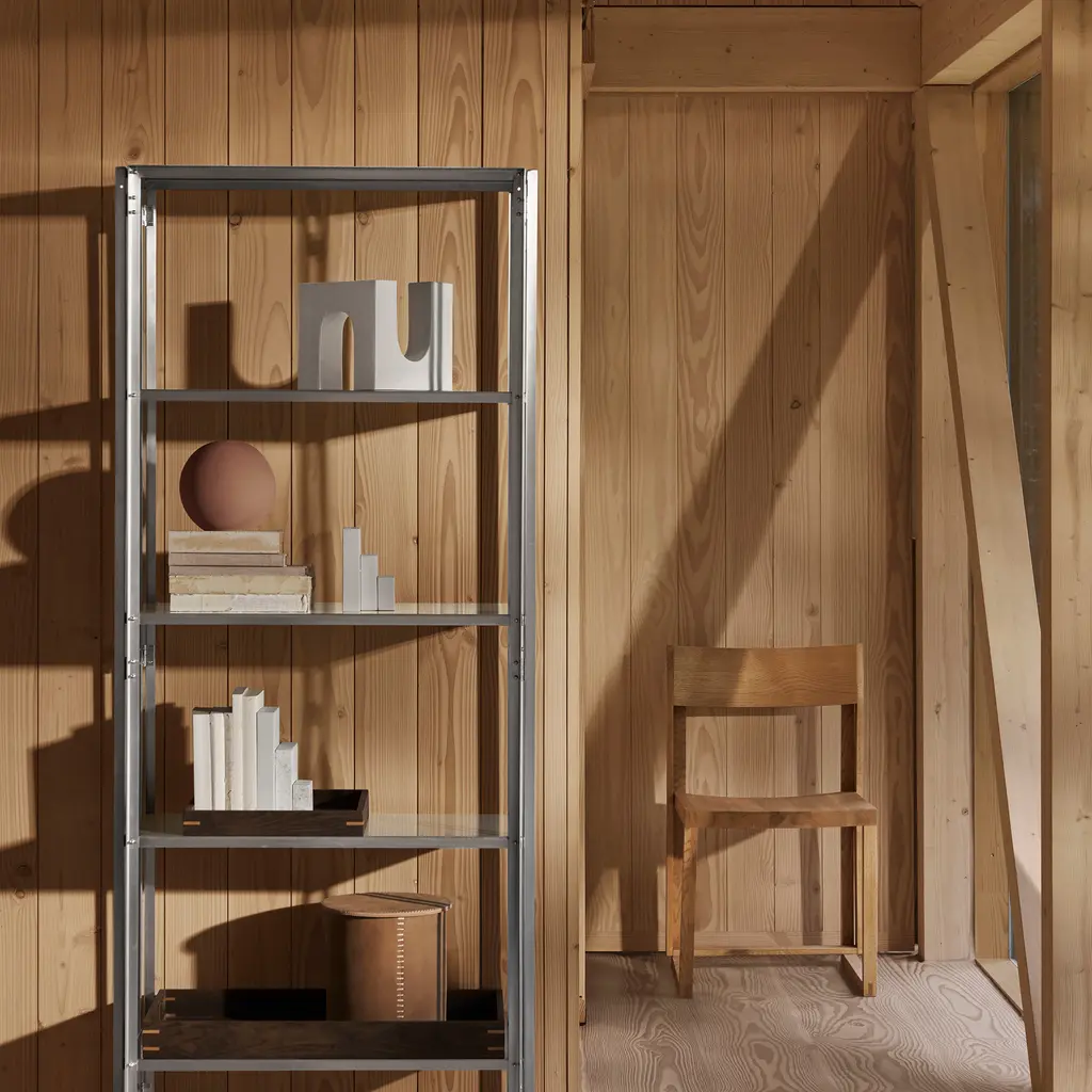 Sleek and minimalist, the Kristina Dam Studio Foldable Shelf enhances your home’s functionality while infusing the décor with an industrial flavor. Featuring an open structure, this shelving system offers the perfect way to organize books or display decorative items. The Foldable Shelf is also crafted skillfully from high-quality stainless steel with a brushed finish. Exposed joints and bolts accentuate the shelves’ industrial character. The design suits a variety of spaces and uses, from living rooms to bedrooms and offices. Easy to assemble, this shelving unit has an anti-tipping mechanism for peace of mind. A console and a side table from the same collection are also available.