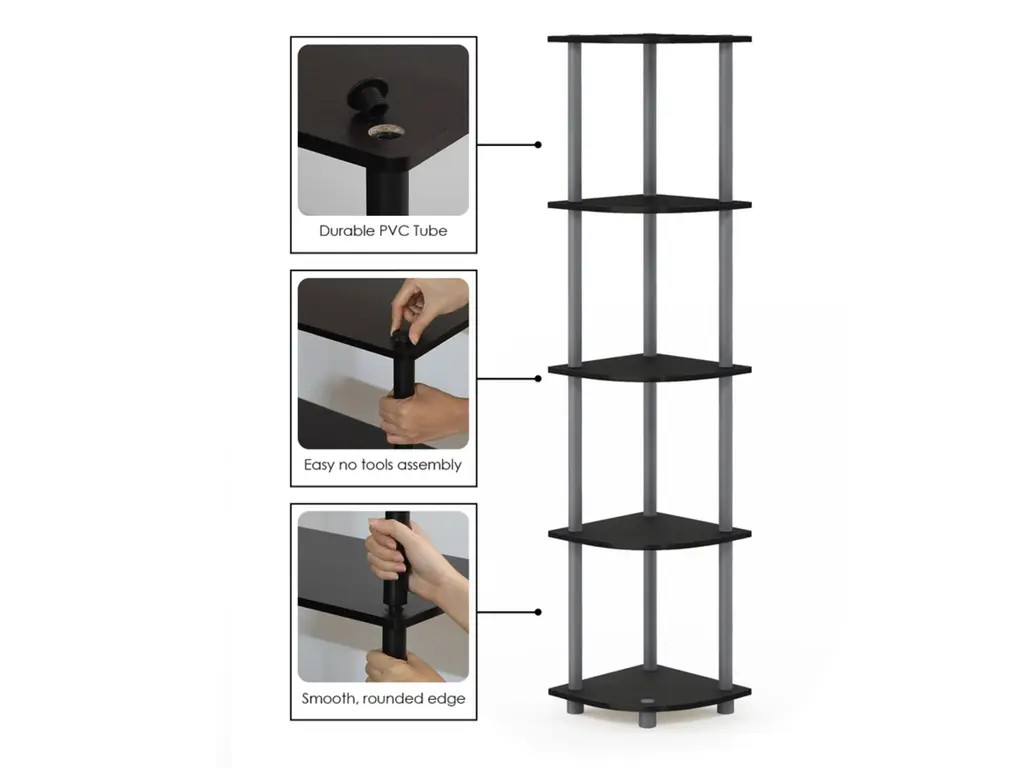 Furinno Turn-N-Tube 5 Tier Corner Display Rack Multipurpose Shelving Unit