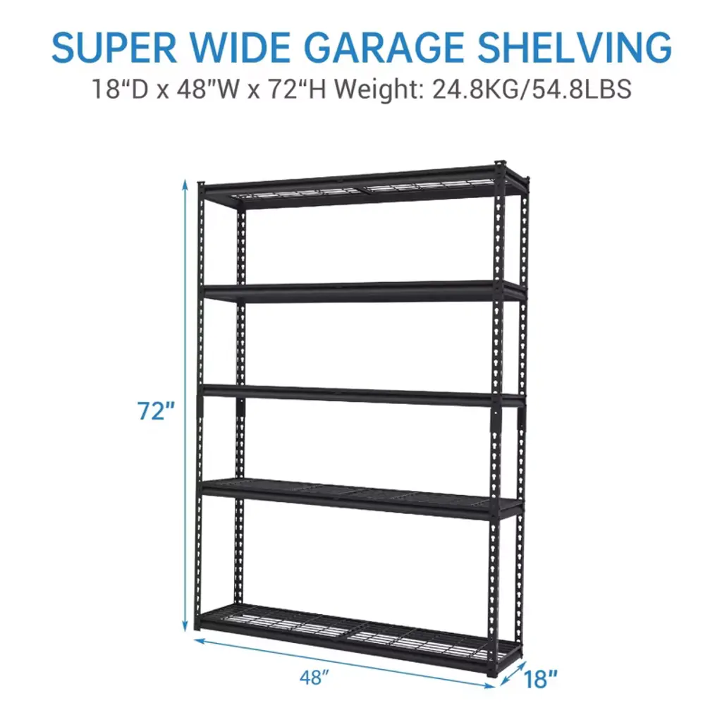 Heavy Duty Garage Shelving Units,5-tier Adjustable Storage Shelves,loads 2500 Lbs,adjustable Garage Storage Shelving, (48" L X 18" W X 72" H)