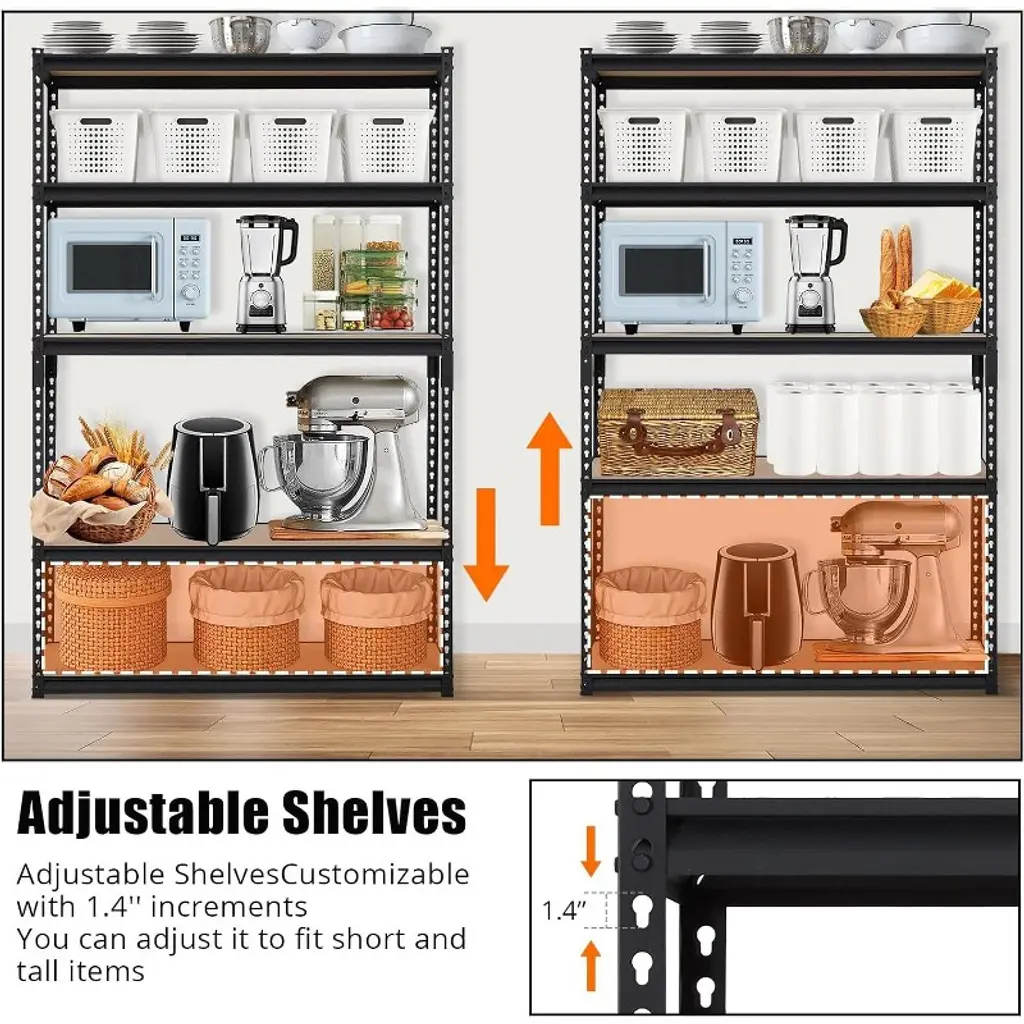 Heavy Duty Storage Shelves, 5 Tier Durable Metal Construction, Adjustable Shelving, Storage Utility Rack Shelf Unit For Garage, Kitchen, Warehouse