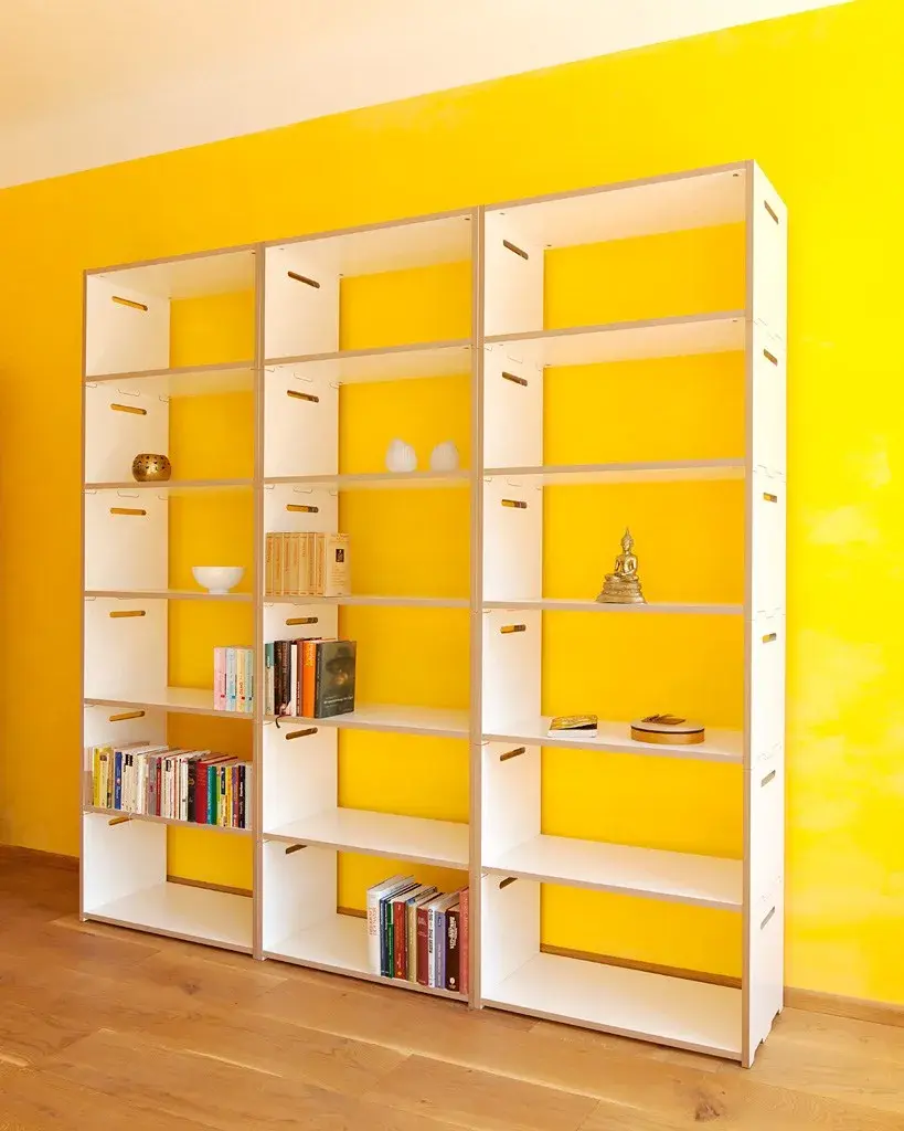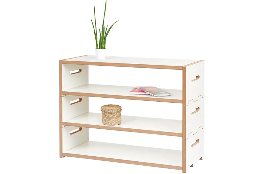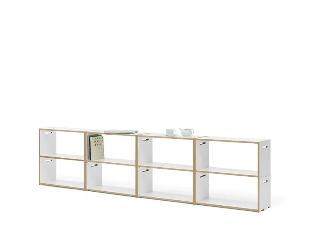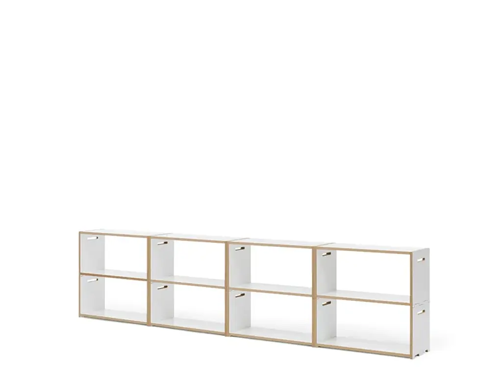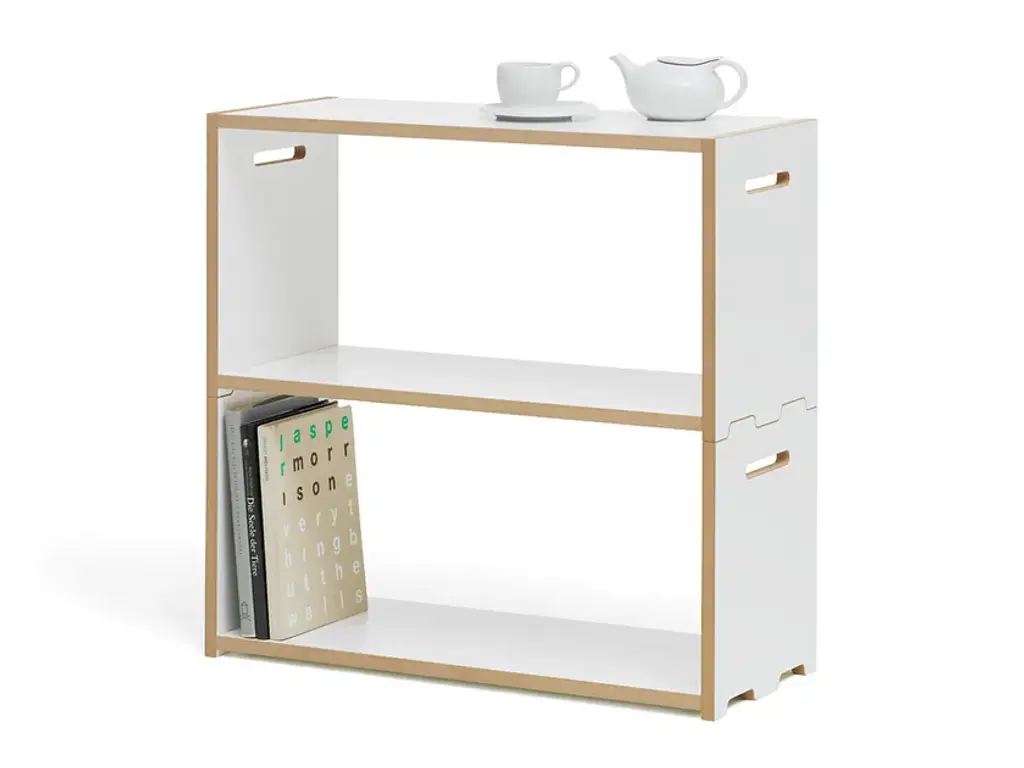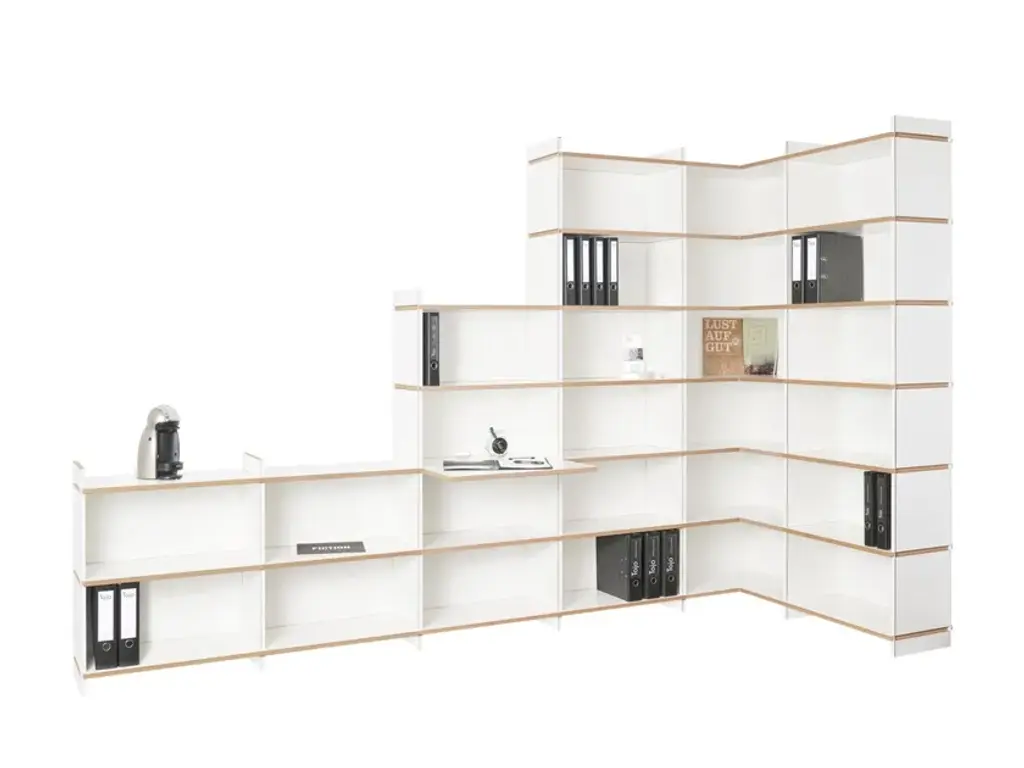 Hochstapler is a free-standing, horizontal and vertically arbitrarily expandable shelf system. The saliently milled out sides give furniture its unmistakable appearance to that, serve however above all the group of the segments among themselves. In addition by the attachment of the ground something below the reaming lateral slipping is prevented. Material: MDF white or anthracite laminated. The modules are in length and height combinable arbitrarily with one another.Award: 2012 interior innovation award
