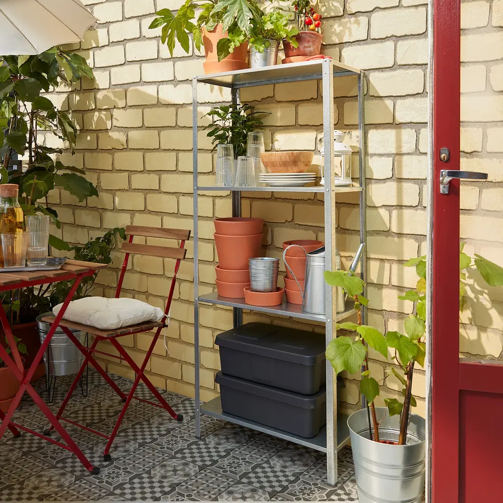 HYLLIS Shelf unit, indoor/outdoor 70 7/8x10 5/8x29 1/8-55 1/8 ". Can be used both indoors and outdoors, and is just as suitable on the balcony as in the kitchen, hallway or bathroom. The included plastic feet protect the floor against scratches. The cover is easy to put on and remove.