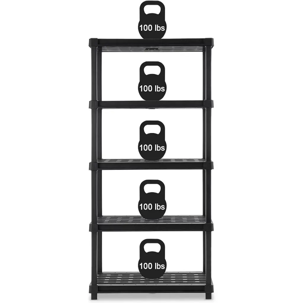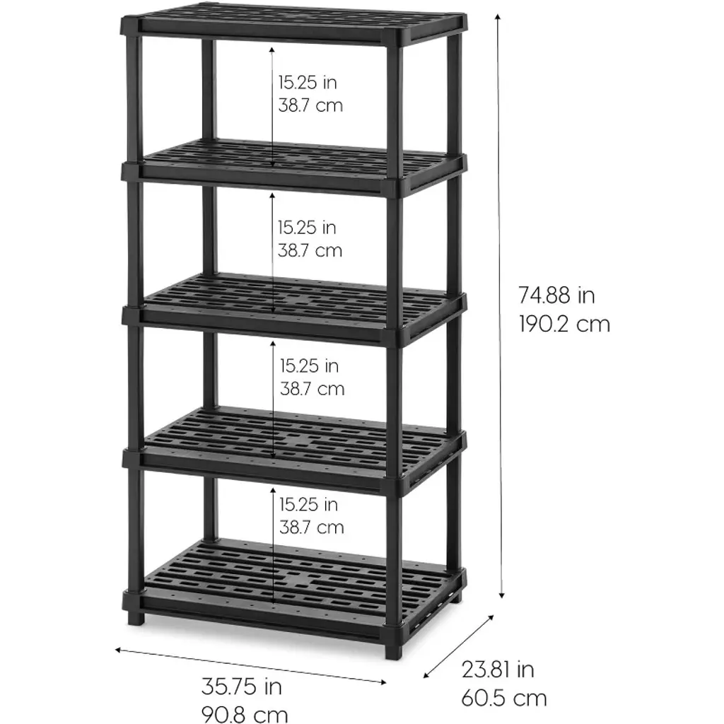 Iris Usa 5-shelf Heavy Duty Deep Plastic Storage Shelves, 750lb Capacity, Shelving Unit Storage Organizer For Garage, Black