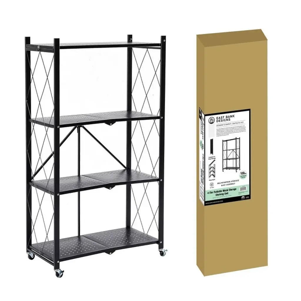 J&v Textiles 4-tier Assembled Foldable Metal Storage Shelving Unit Black