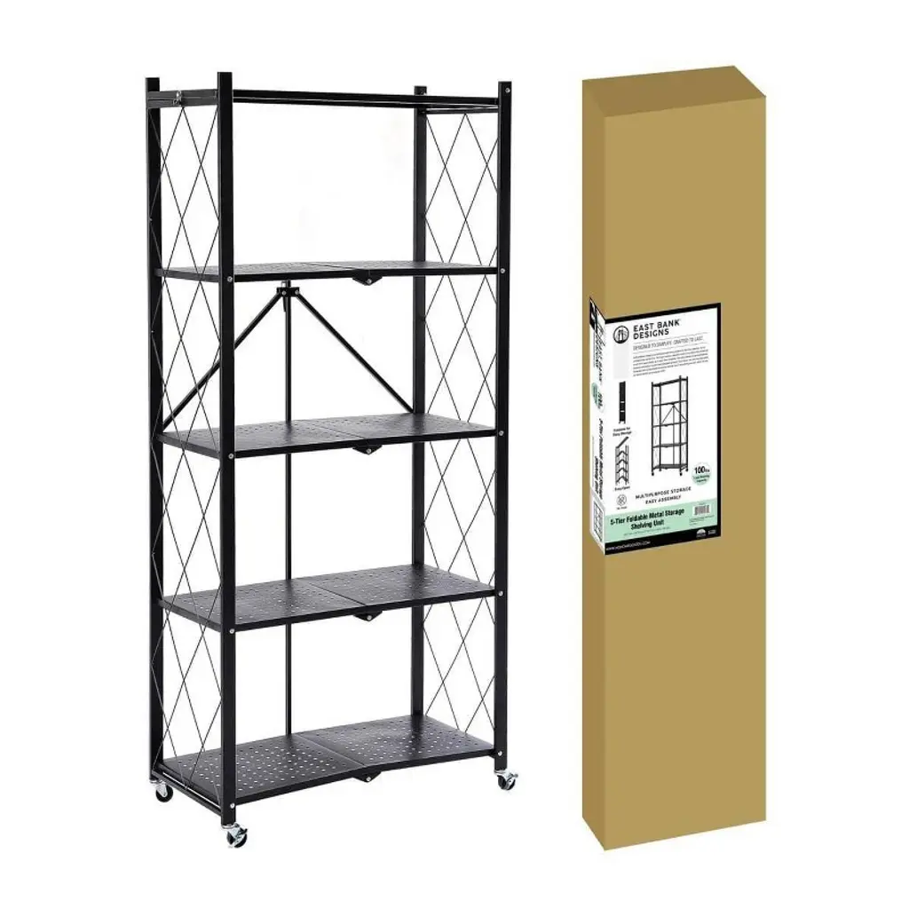 J&v Textiles 5-tier Assembled Foldable Metal Storage Shelving Unit Black