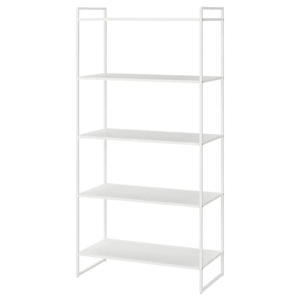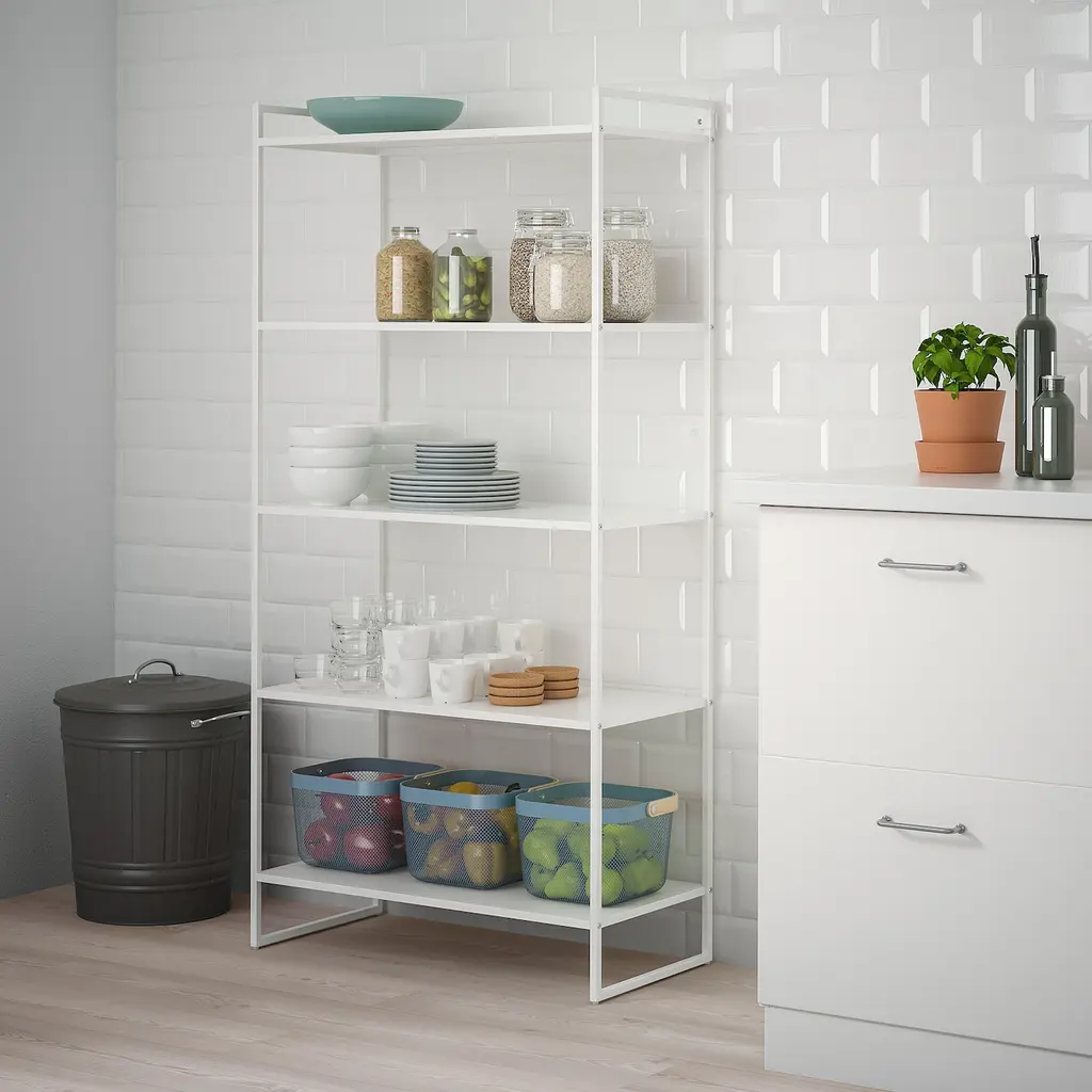 JONAXEL Shelf unit - white 31 1/2x15x63 ". Can also be used in bathrooms and other damp indoor areas. The shelf unit is durable, easy to clean and protected from rust, as it is made of powder-coated steel. Recommended for indoor use only.