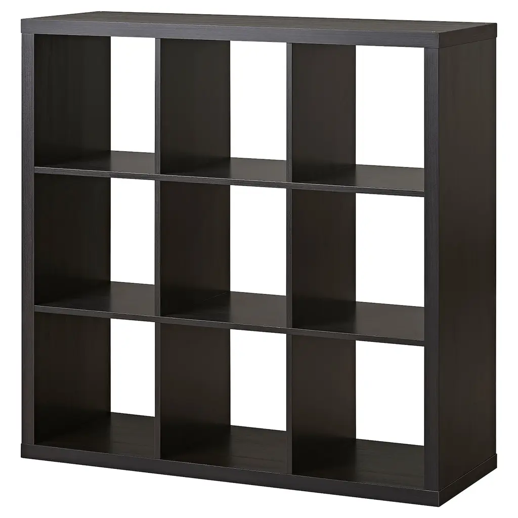 KALLAX Shelf unit - black-brown 43 7/8x43 7/8 ". The simple design with clean lines makes KALLAX flexible and easy to use at home. The shelves align perfectly with the frame to create a strong and uniform style. This furniture must be secured to the wall with the enclosed wall anchoring device.