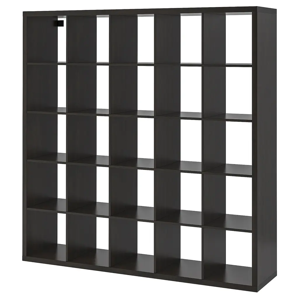 KALLAX Shelf unit - black-brown 71 5/8x71 5/8 ". You can use this shelving unit as a room divider to create a room within a room while enjoying plenty of storage. The simple design with clean lines makes KALLAX flexible and easy to use at home. Two people are needed to assemble this furniture.
