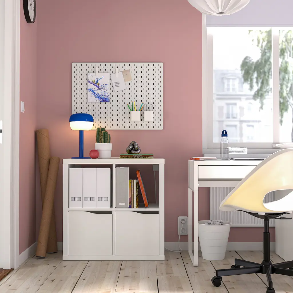 KALLAX Shelving unit - with 2 doors/wave shaped white 30 1/8x30 1/8 ". Different wall materials require different types of fasteners. Use fasteners suitable for the walls in your home. This furniture must be secured to the wall with the enclosed wall anchoring device.