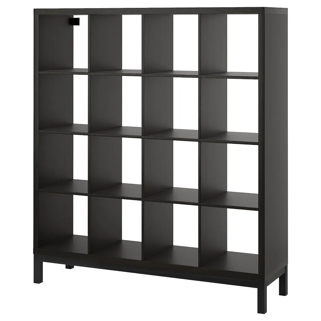 KALLAX Shelving unit with underframe - black-brown/black 57 7/8x64 5/8 ". The underframe gives the shelving unit an airy and elegant look while making it easier to vacuum under it. You can use this shelving unit as a room divider to create a room within a room while enjoying plenty of storage.