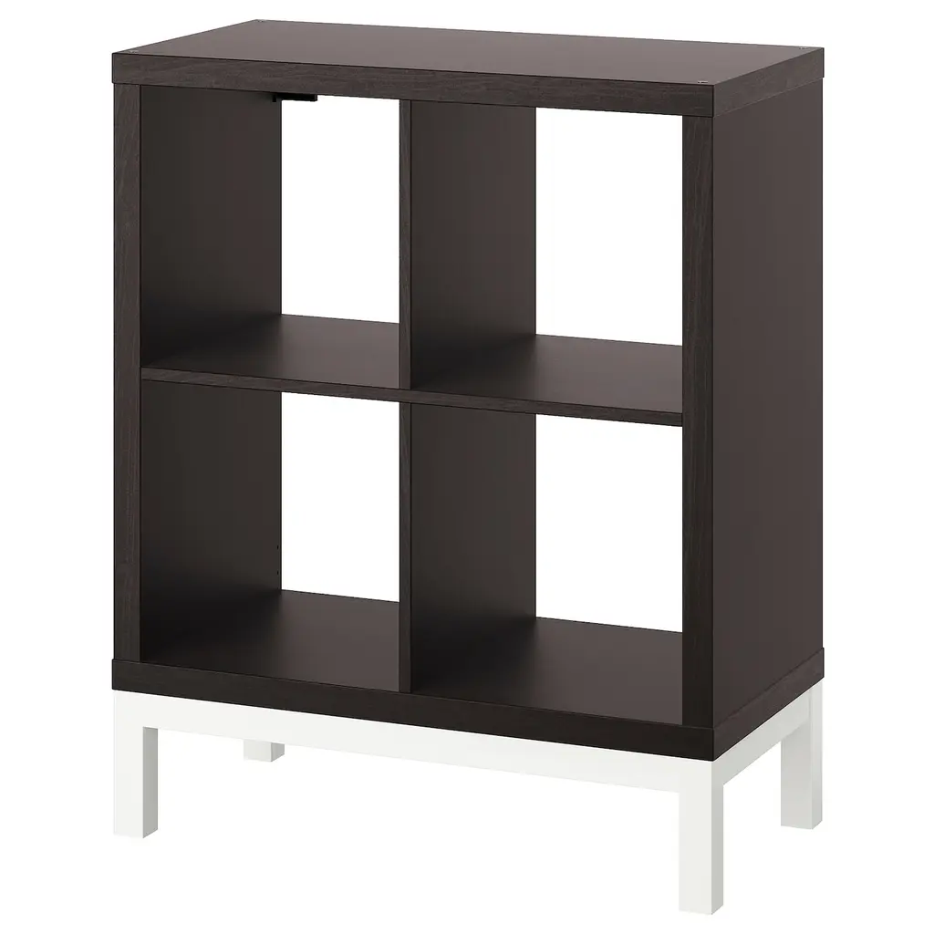 KALLAX Shelving unit with underframe - black-brown/white 30 3/8x37 ". The simple design with clean lines makes KALLAX flexible and easy to use at home. The smooth surfaces and the rounded edges give the shelving unit a well-thought-out and solid look.
