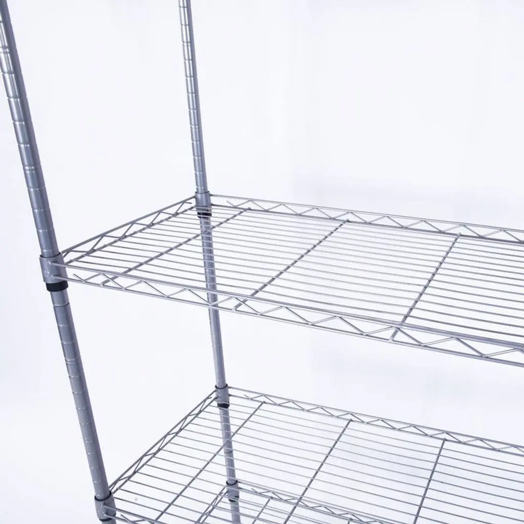 The wire shelf uses durable steel construction with a silver-gray finish. These storage shelves provide an enormous amount of space and strong shelves. The shelving unit doesn't occupy too much space, but it can create more additional space. Wire shelf storage shelving unit. The storage shelves are easy to assemble, and all parts are packaged for idiots. This wire shelf structure is very simple, No tools are required to assemble it. Storage shelves wire shelf wire shelving unit. You can adjust the height of the storage shelves according to the size of the item. The spacing of each layer of this wire shelf can be adjusted.