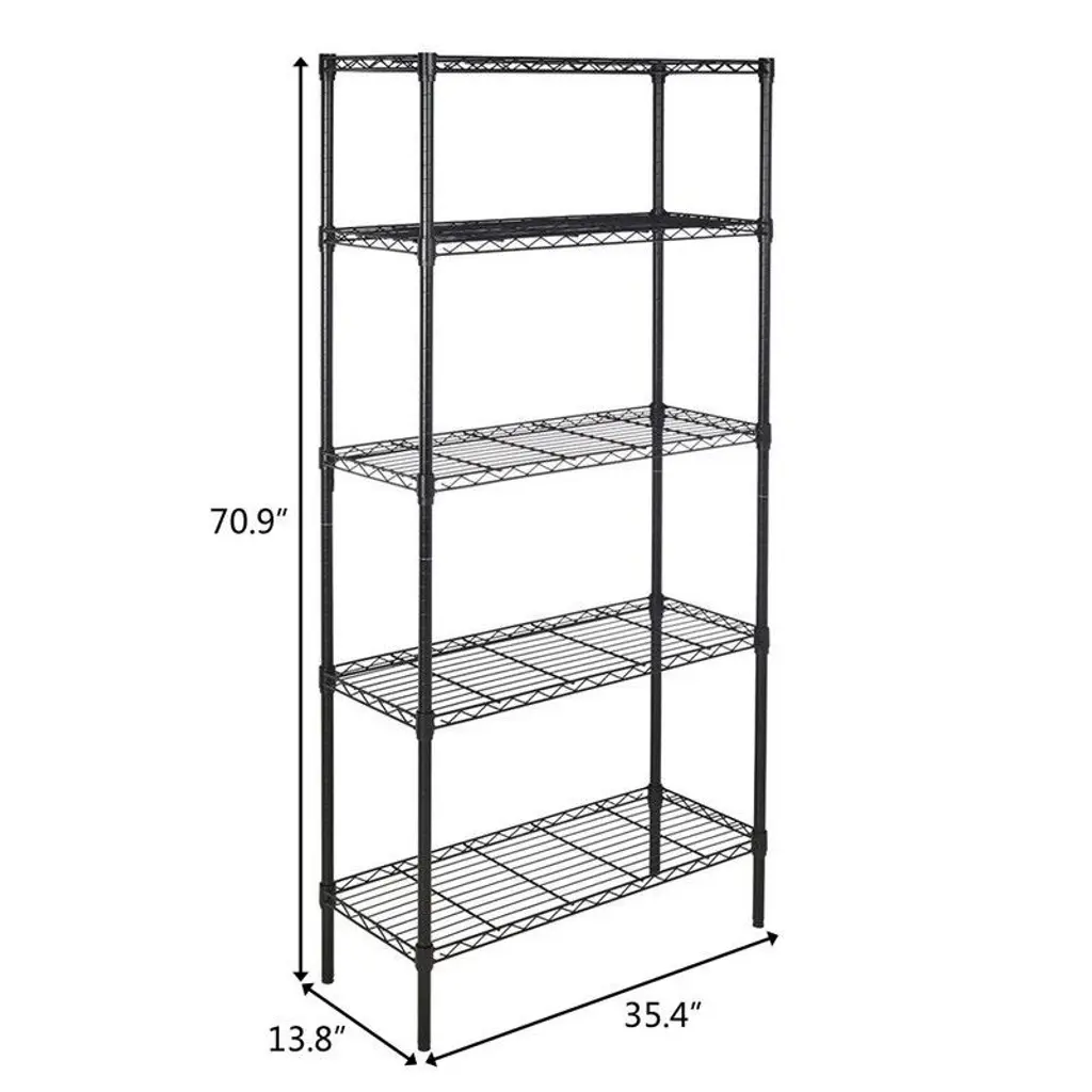 Introduction: The 5-layer chrome-plated iron shelf is a perfect shelf for storing, organizing, or displaying accessories, makeup products, tools, etc. The multi-layer structure can accommodate different sizes and shapes of items. Open design allows you to quickly get what you want. High-grade cast iron plating is solid and reliable, durable. Simple modern design is well coordinated with any home and Shop Decor style.