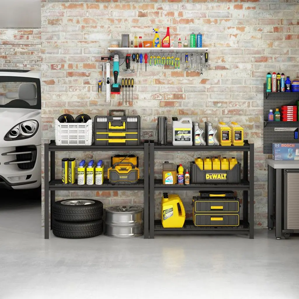 Introducing our heavy duty metal storage shelf, the perfect solution for all your storage needs. The perfect solution for all your storage needs. This storage rack is made of durable. This storage rack is made of durable, high quality carbon steel metal and two extra support rods per shelf, and the surrounding columns are made of double-layer materials. This versatile storage rack is perfect for kitchens, garages, pantries, offices or any other space that needs organized storage.